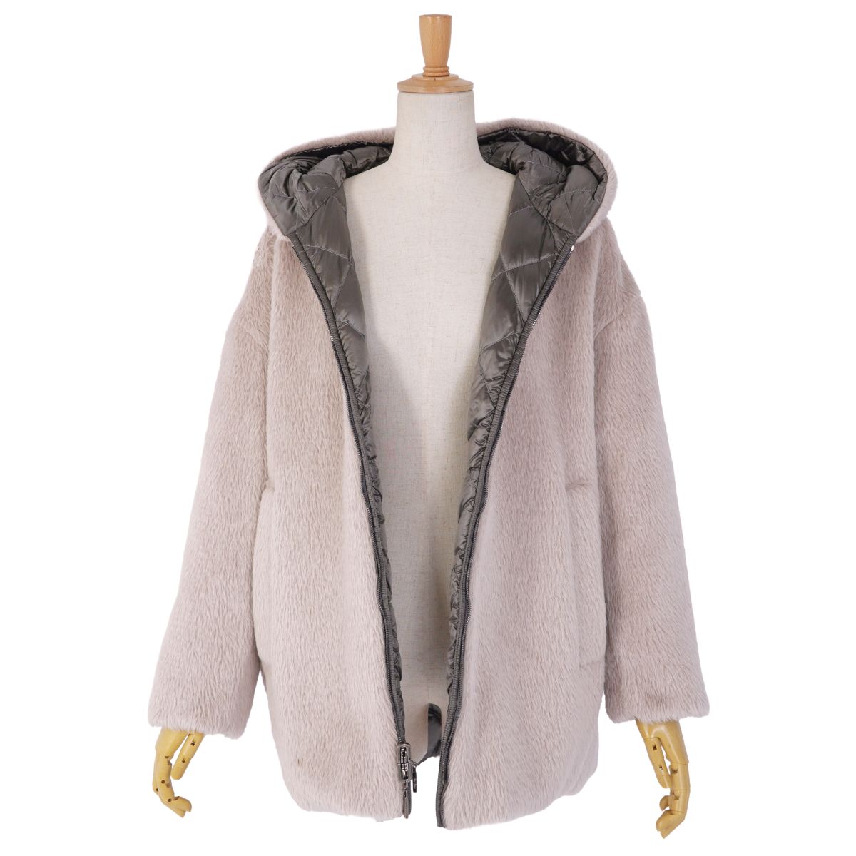 【極美品】マックスマーラ Max Mara The Cube コート 2024 ダウンコート フード付き リバーシブル アルパカ ウール アウター レディース IT34 US0 GB2(S相当) グレージュ【中古】