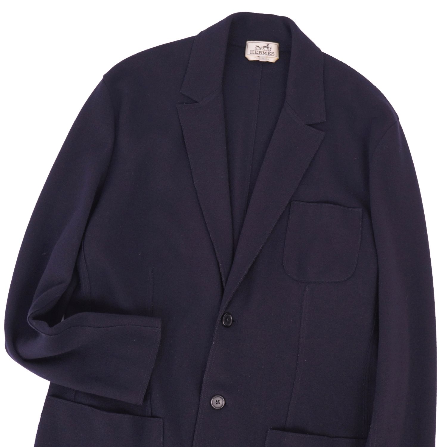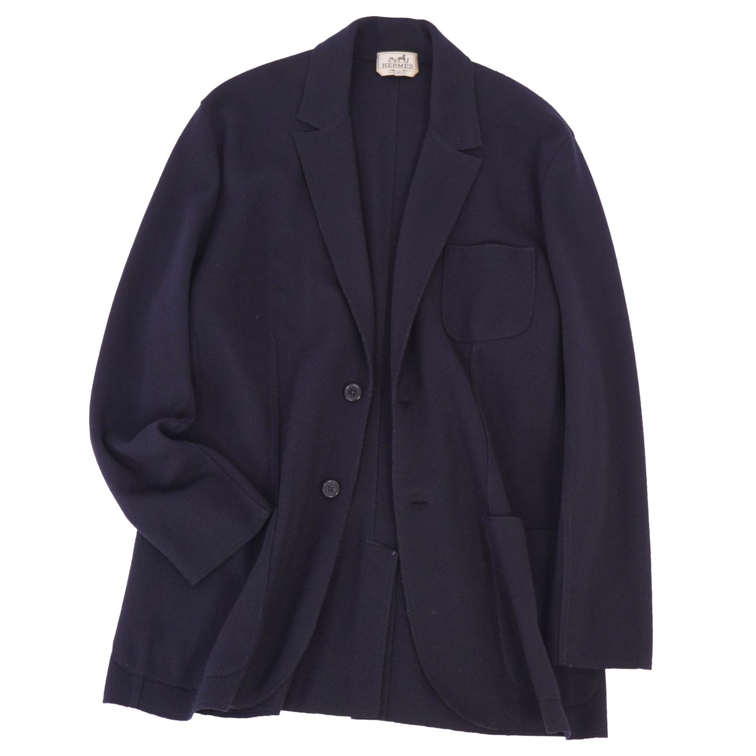 エルメス HERMES ジャケット テーラードジャケット シングル ダブルフェイス ウール カシミヤ アウター メンズ ネイビー サイズL