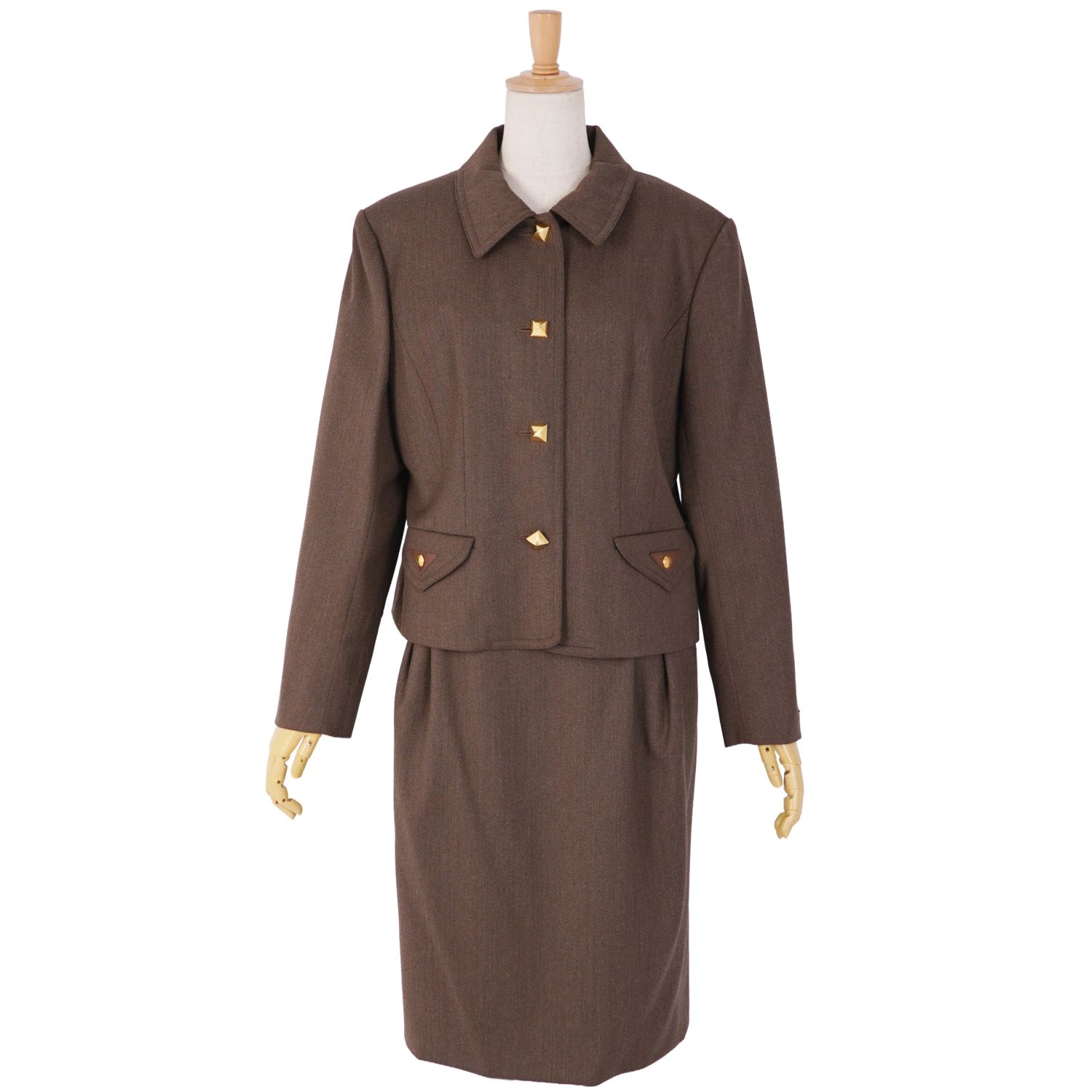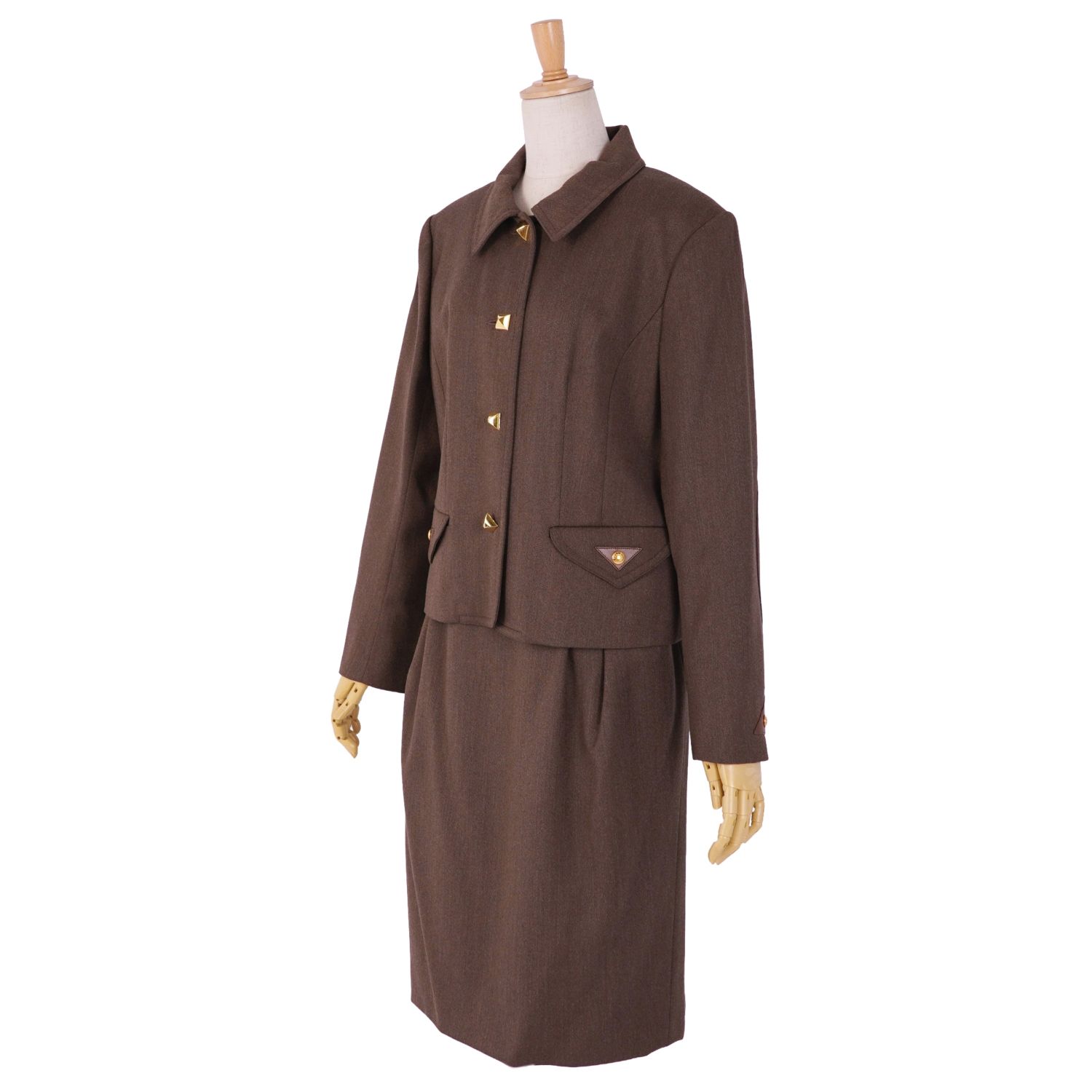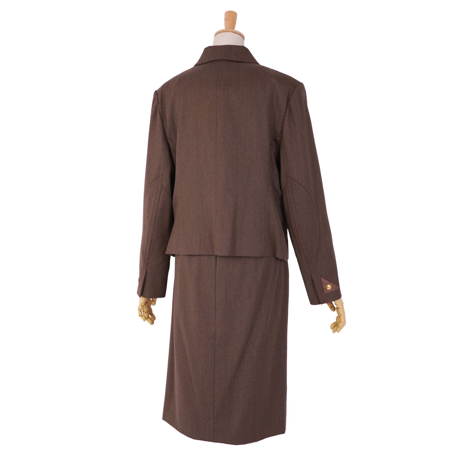 | 商品名 | 【極美品】Vintage エルメス HERMES セットアップ スカートスーツ ジャケット スカート メドール セリエボタン ウール レザー レディース 44(L相当) カーキグリーン【中古】 |