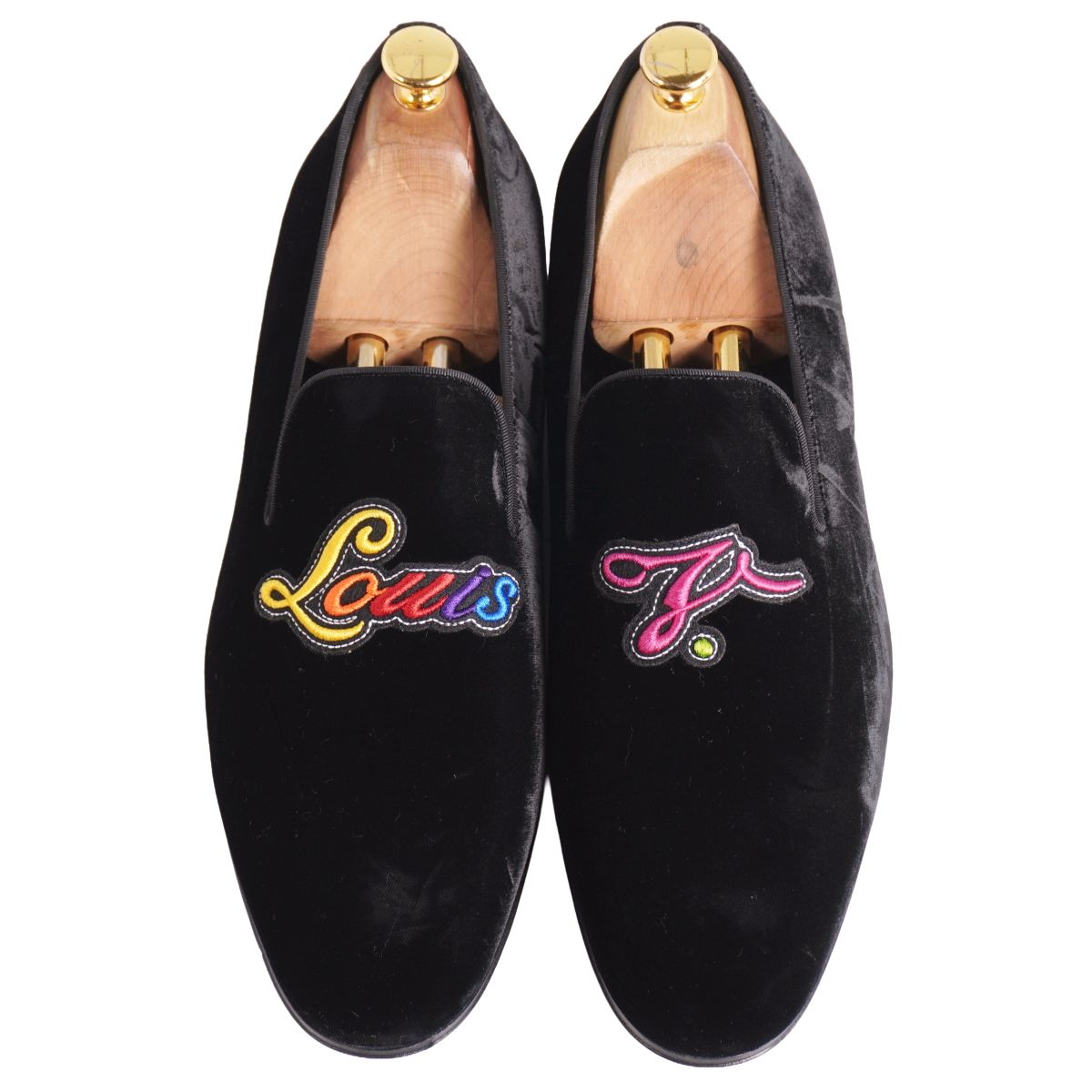 ルイヴィトン LOUIS VUITTON ローファー オートゥイユ ライン オペラシューズ ベロア シューズ 靴 メンズ イタリア製 ブラック サイズ9(27.5cm相当)