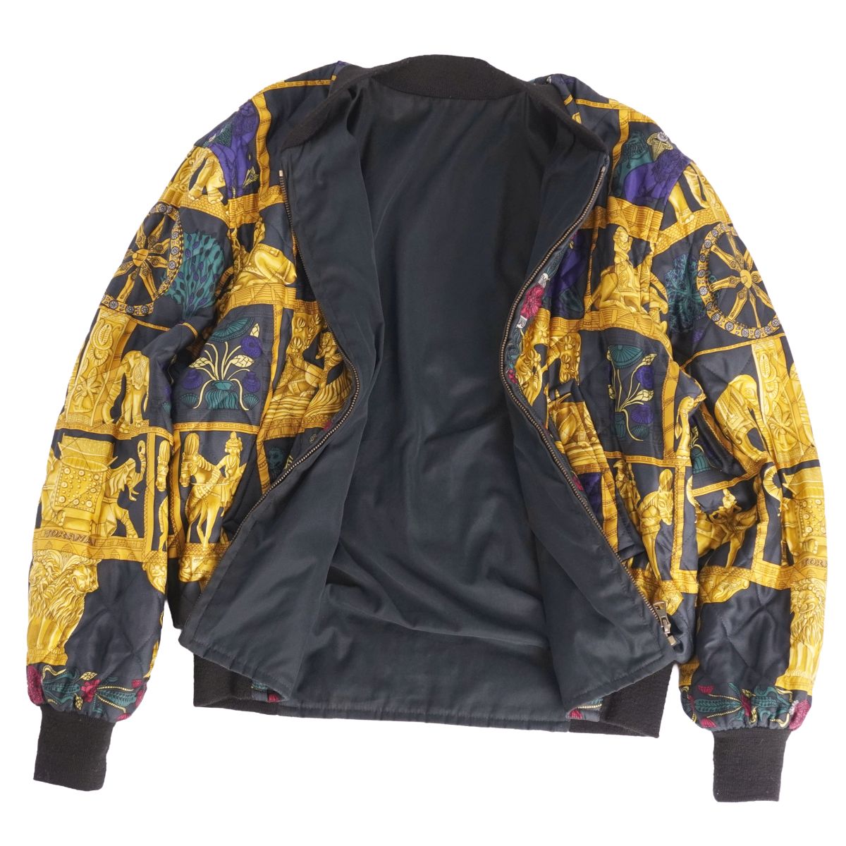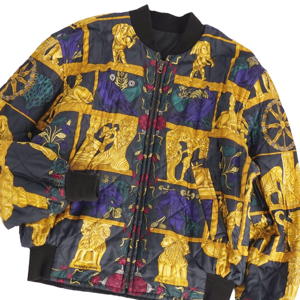 Vintage エルメス HERMES ジャケット ブルゾン リバーシブル 中綿入り シルク 総柄 アウター メンズ フランス製 ブラック/マルチカラー サイズ46(S相当)