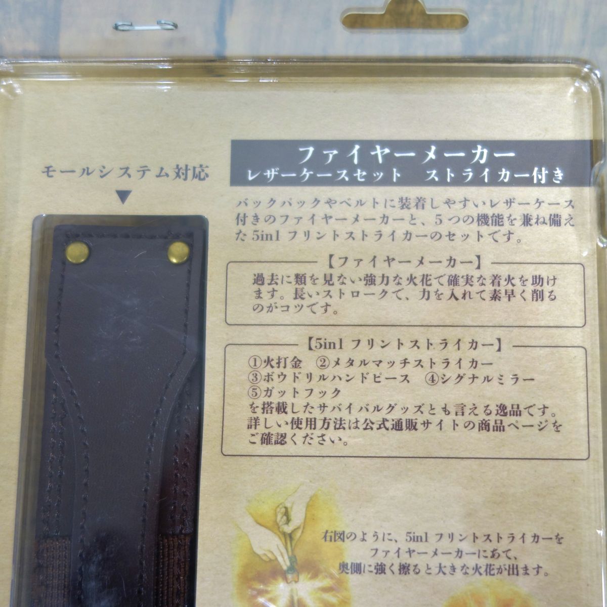 【新古品】ブッシュクラフト Bush craft ファイヤーメーカー レザーケースセット ストライカー付き キャンプ アウトドア【中古】