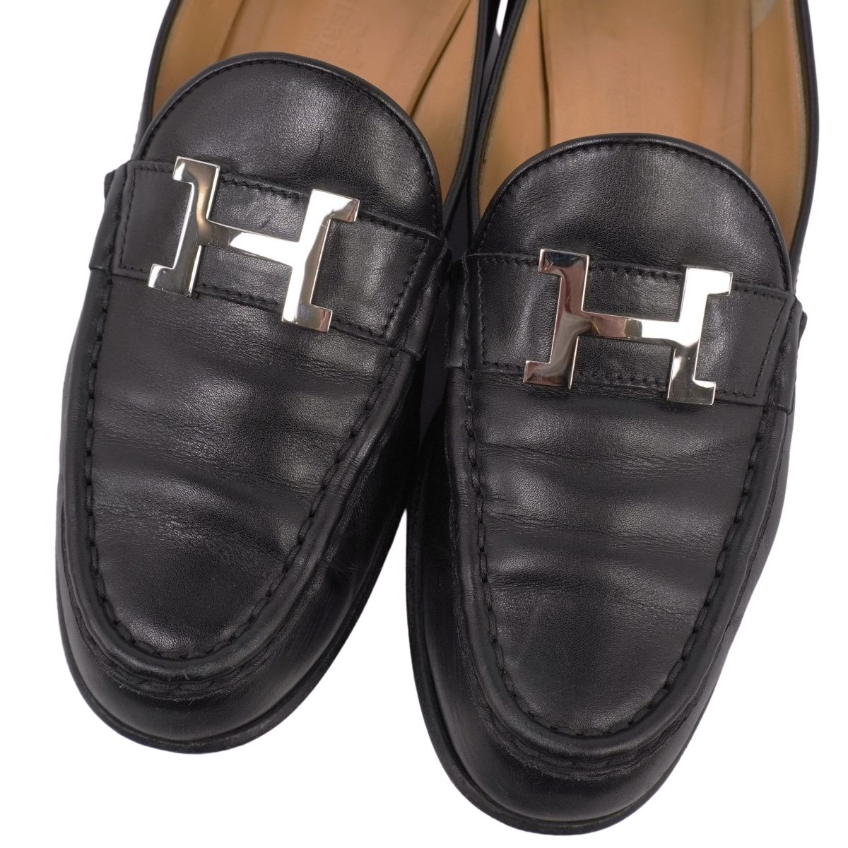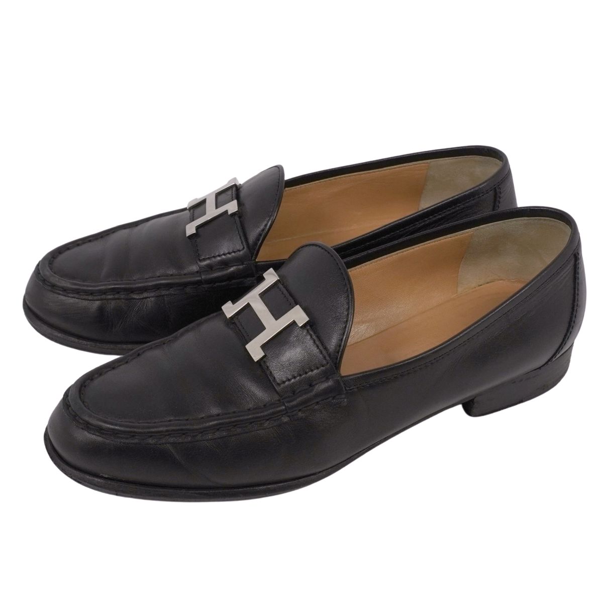 エルメス HERMES ローファー モカシン Hロゴ コンスタンス レザー ヒール シューズ 靴 レディース イタリア製 ブラック サイズ38(25cm相当)