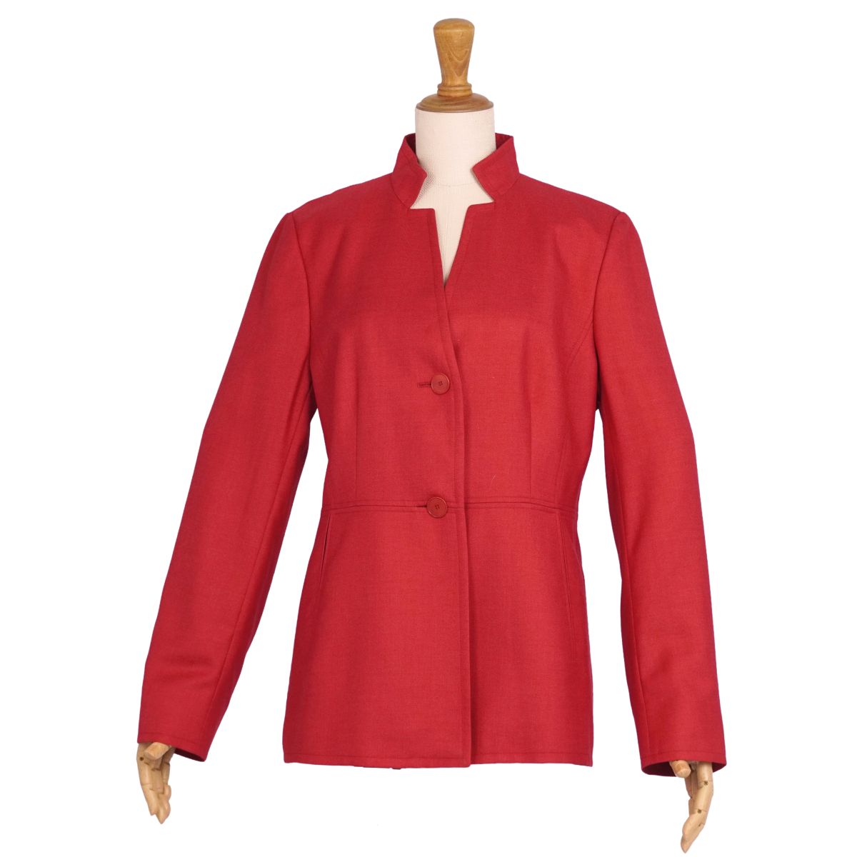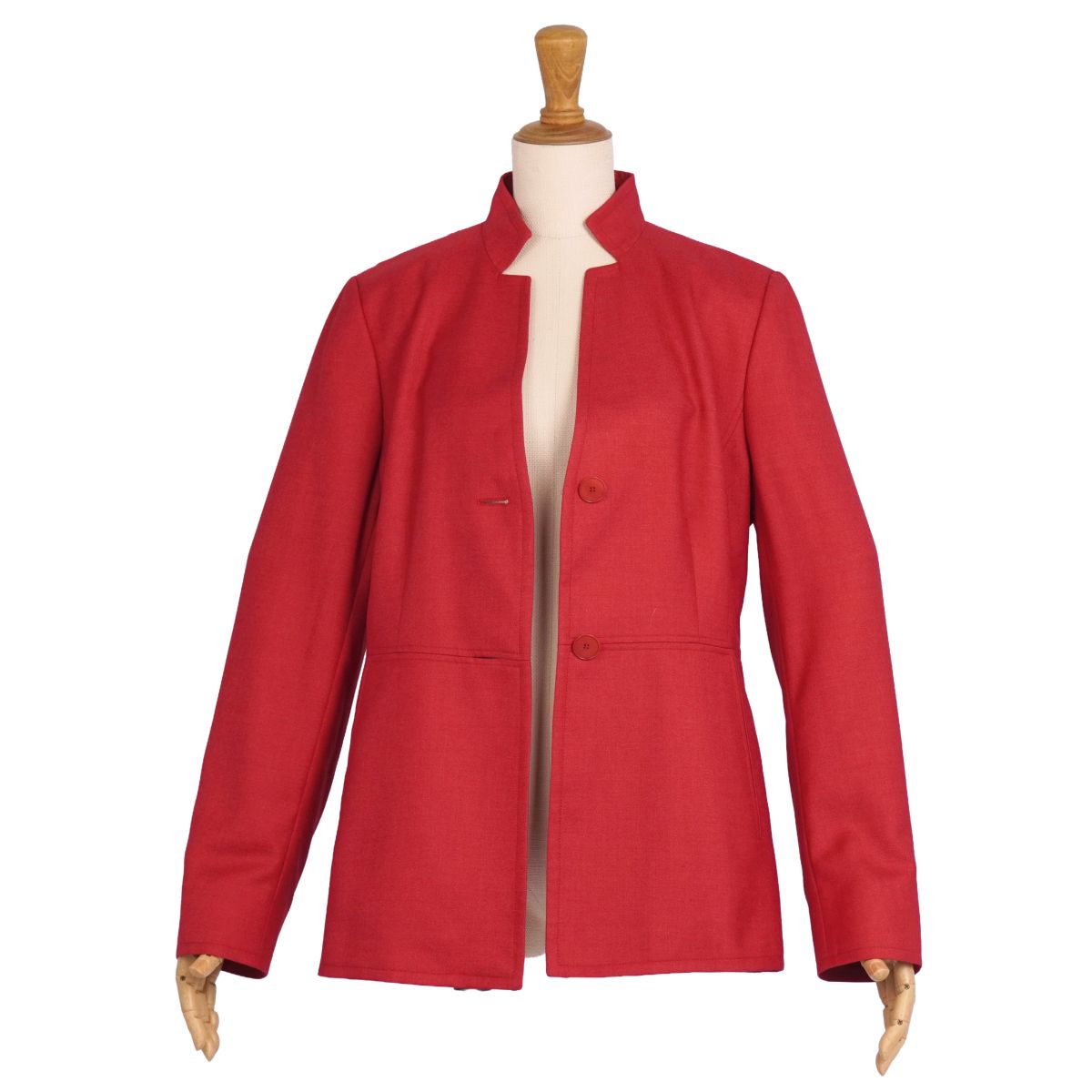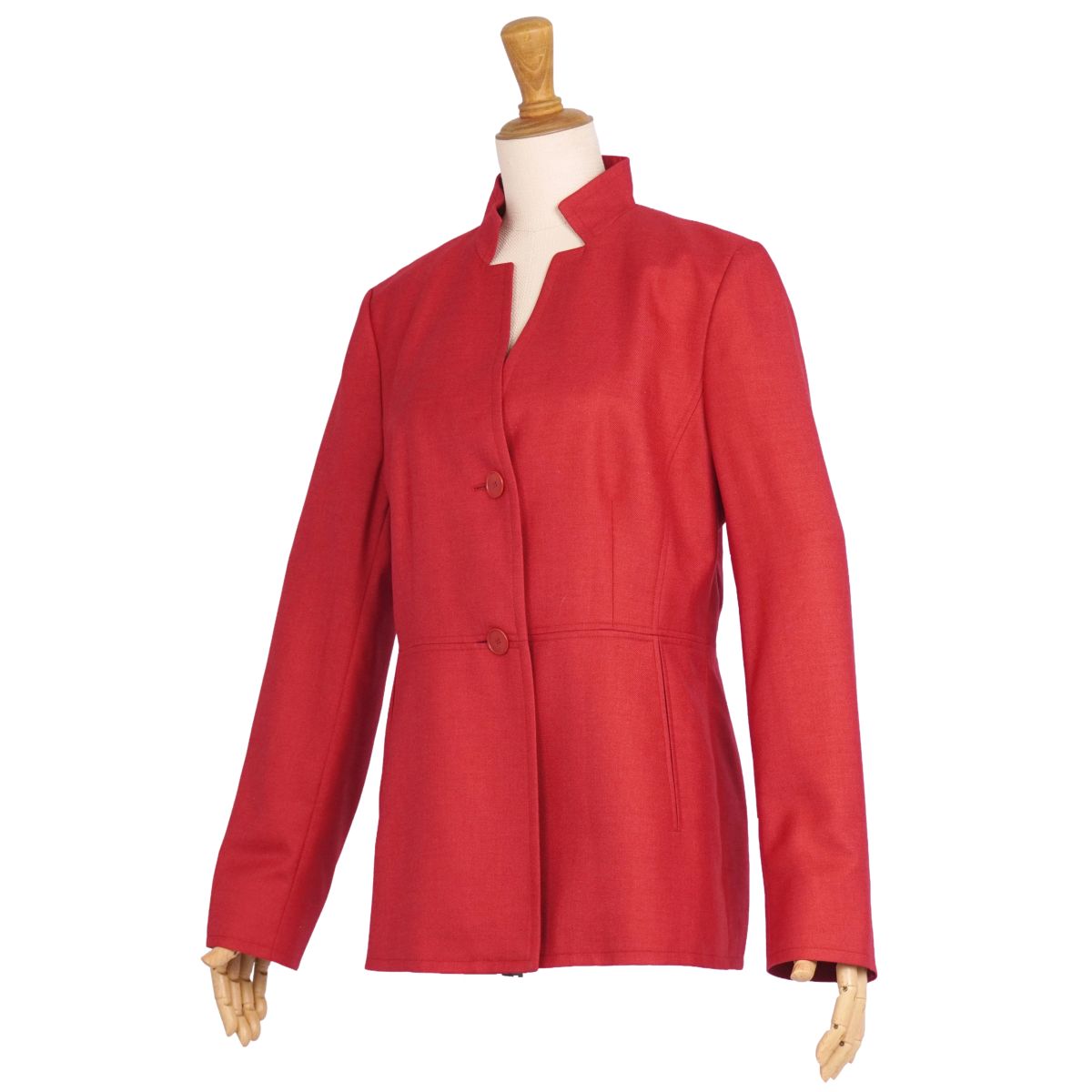 アクリス AKRIS ジャケット スタンドカラー カシミヤ シルク アウター レディース レッド サイズ40(M相当)