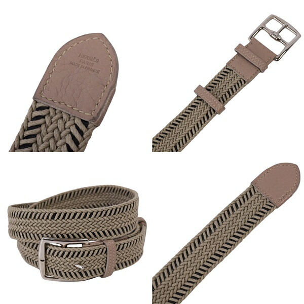 エルメス HERMES ベルト エトリヴィエール 編み込み メッシュベルト レディース フランス製 グレージュ サイズ105