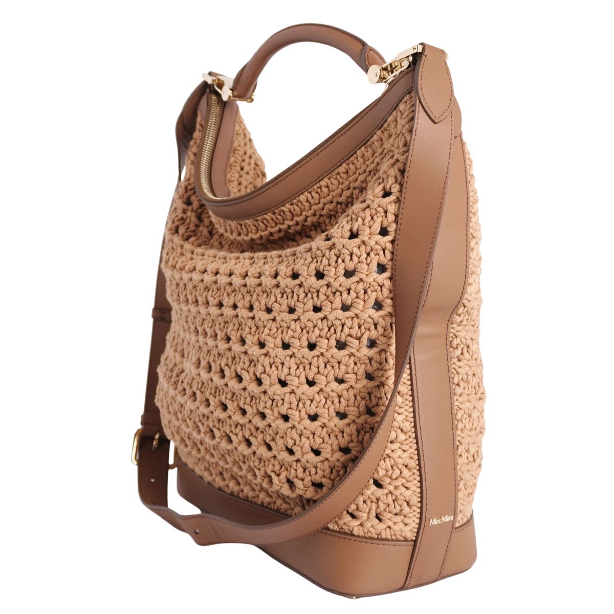 マックスマーラ Max Mara バッグ ショルダーバッグ ニット レザー カバン 鞄 レディース イタリア製 ブラウン サイズ-
