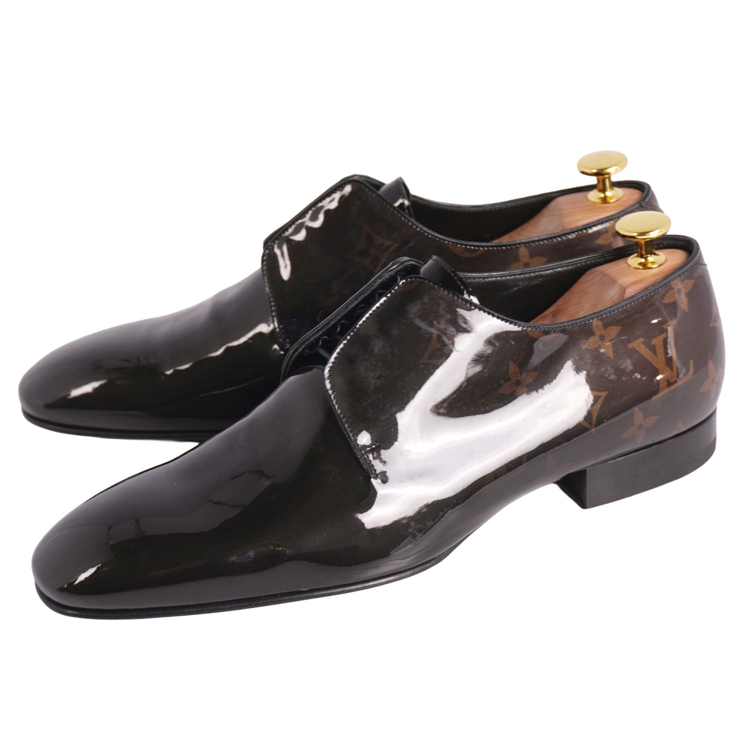 ルイヴィトン LOUIS VUITTON グルネル ライン レザーシューズ ダービーシューズ ドレスシューズ モノグラム パテントレザー エナメルレザー 靴 メンズ ダークブラウン サイズ7(26cm相当)