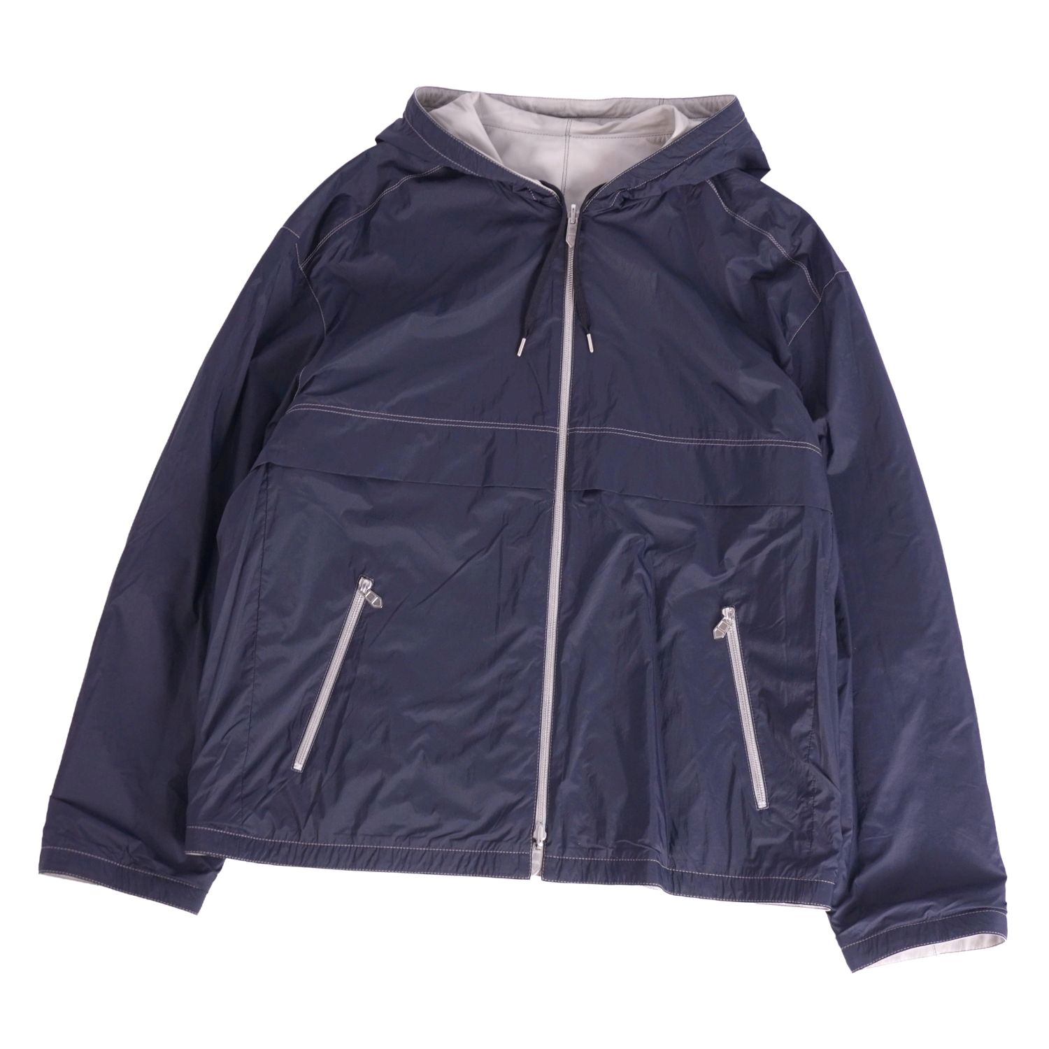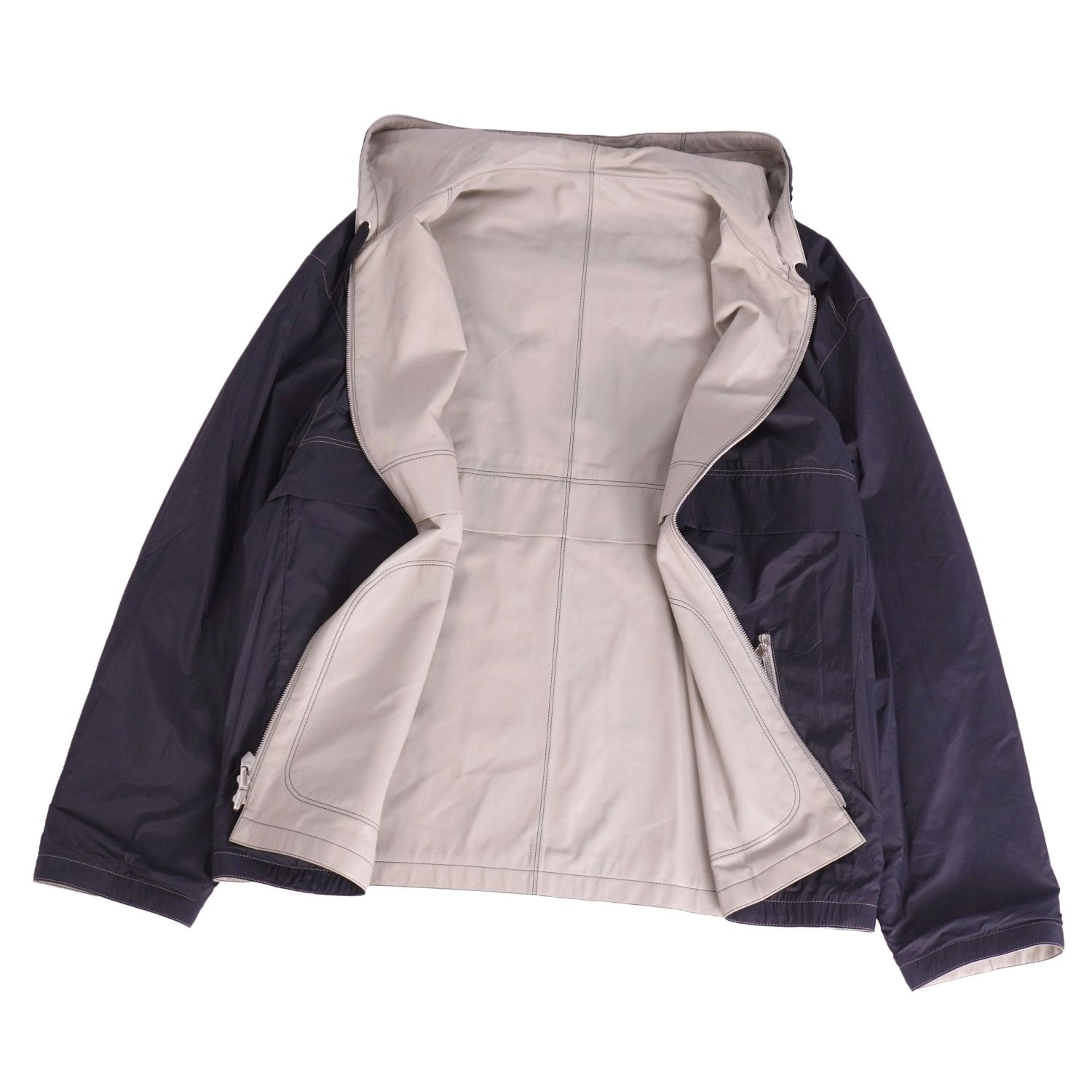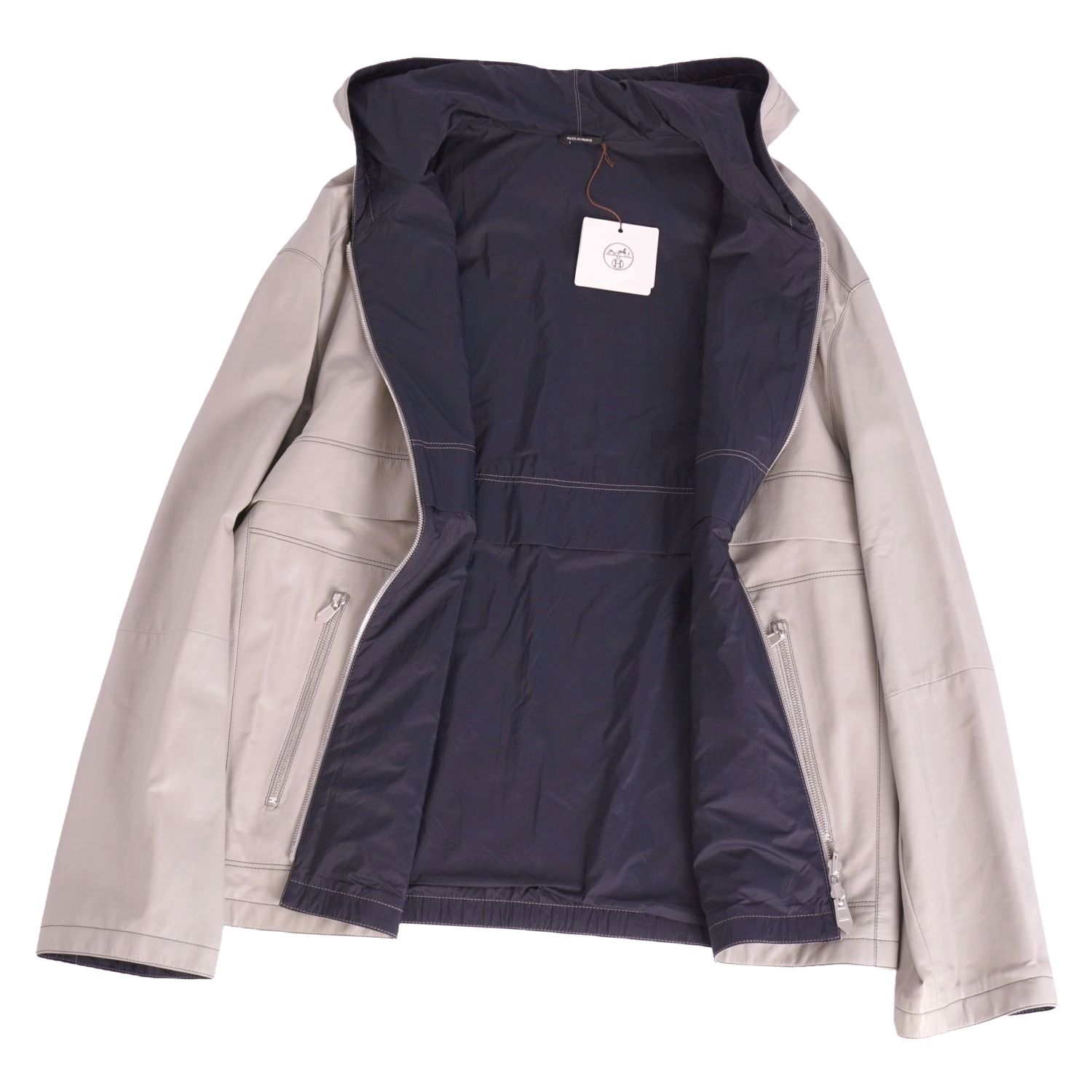 商品名 【美品】エルメス HERMES ジャケット パーカー リバーシブル フード付き カーフレザー ナイロン 無地 アウター メンズ 50(M相当) グレー/ネイビー【中古】