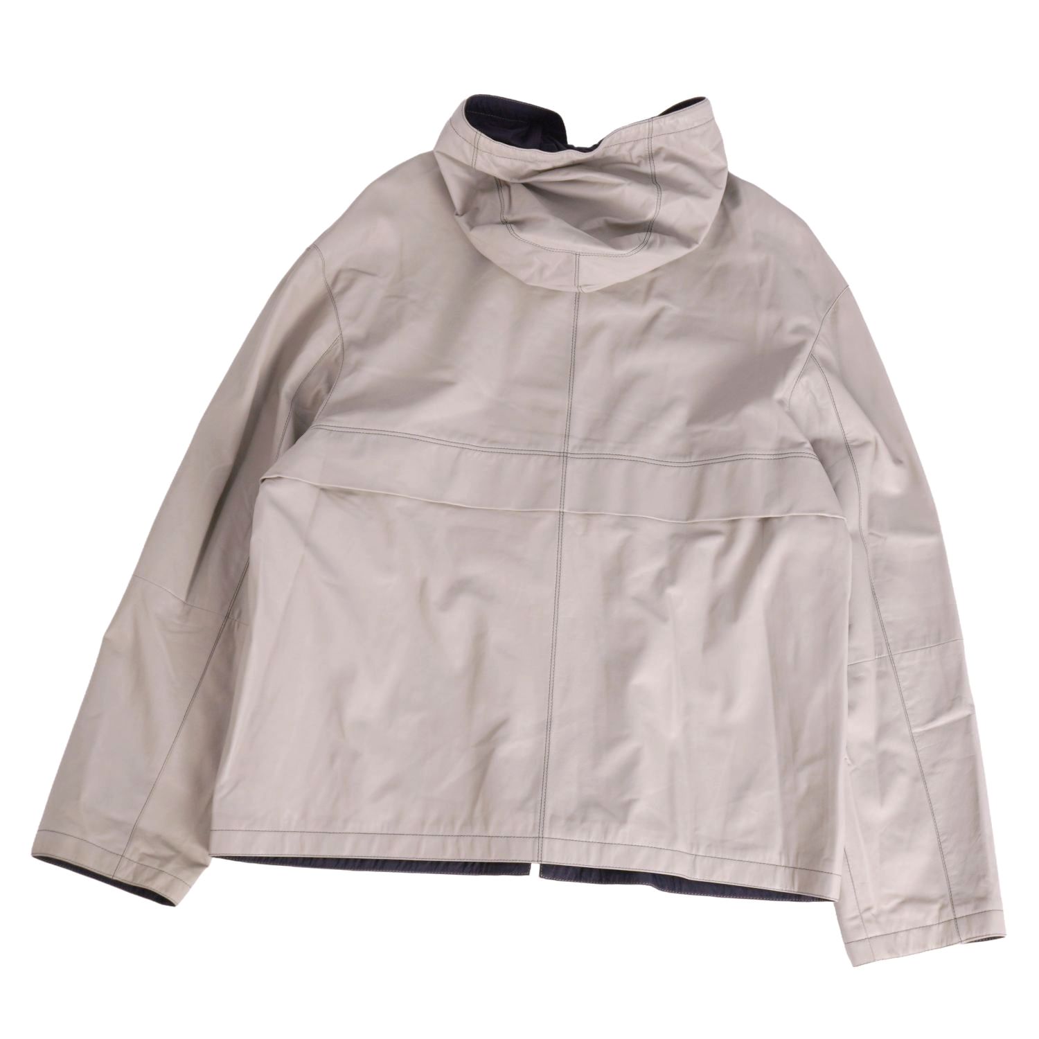 エルメス HERMES ジャケット パーカー リバーシブル フード付き カーフレザー ナイロン 無地 アウター メンズ グレー/ネイビー サイズ50(M相当)