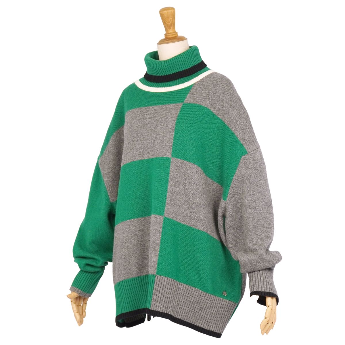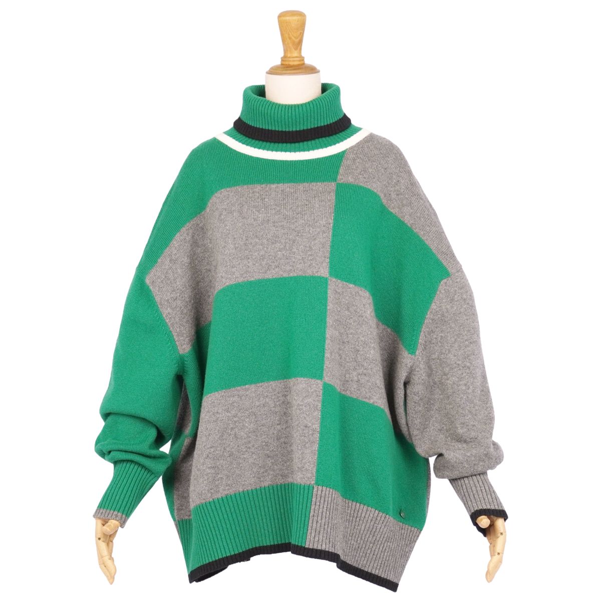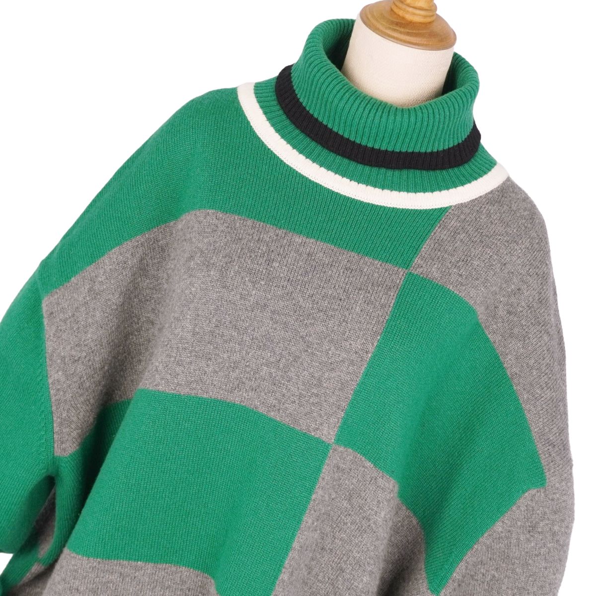 商品名 【美品】エルメス HERMES ニット ハイネック セーター ロングスリーブ 長袖 カシミヤ トップス レディース イギリス製 40(M相当) グリーン/グレー【中古】
