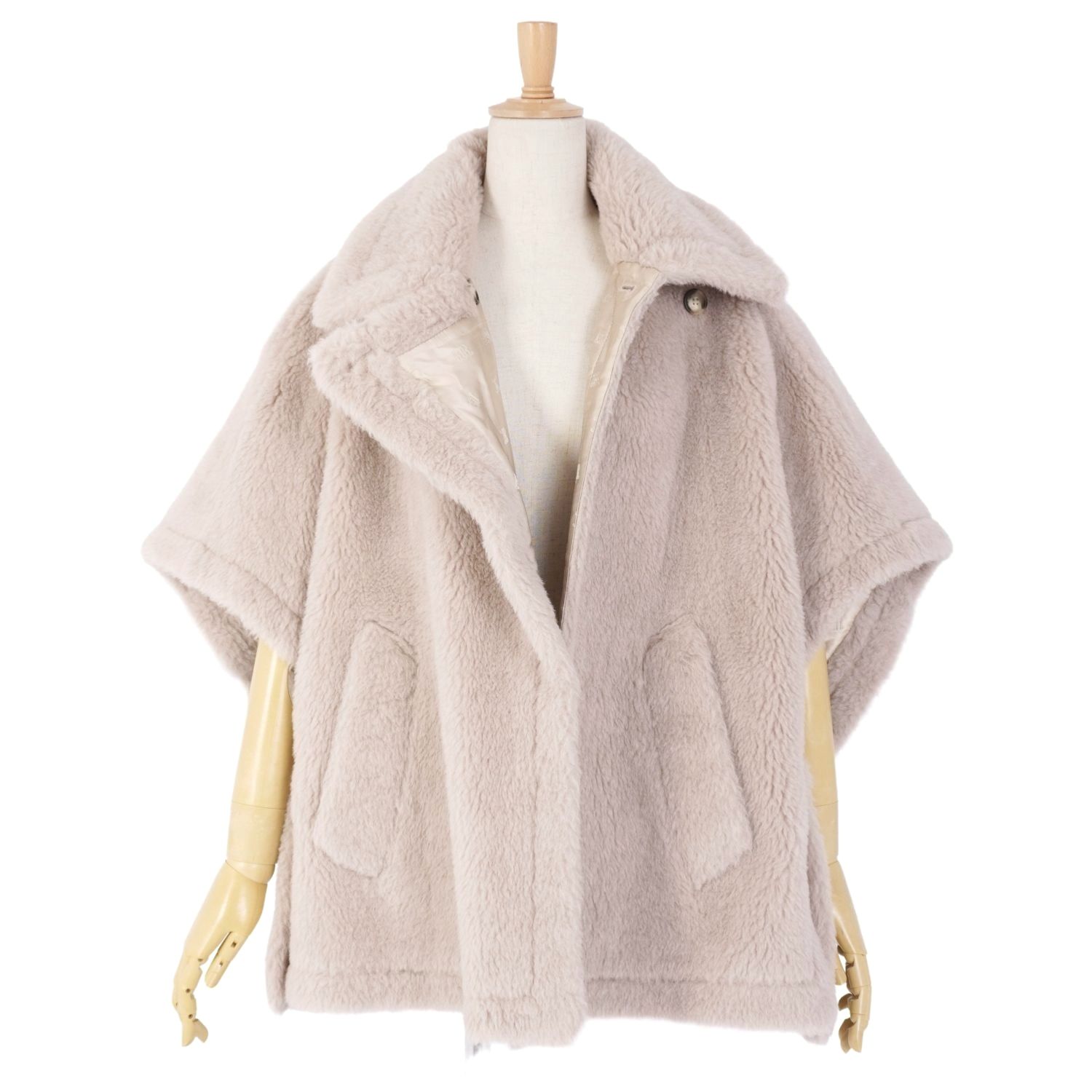 マックスマーラ Max Mara 2024年 TEBE1 テディベア コート ポンチョ ケープ ボア アルパカ ウール アウター レディース グレージュ サイズフリー