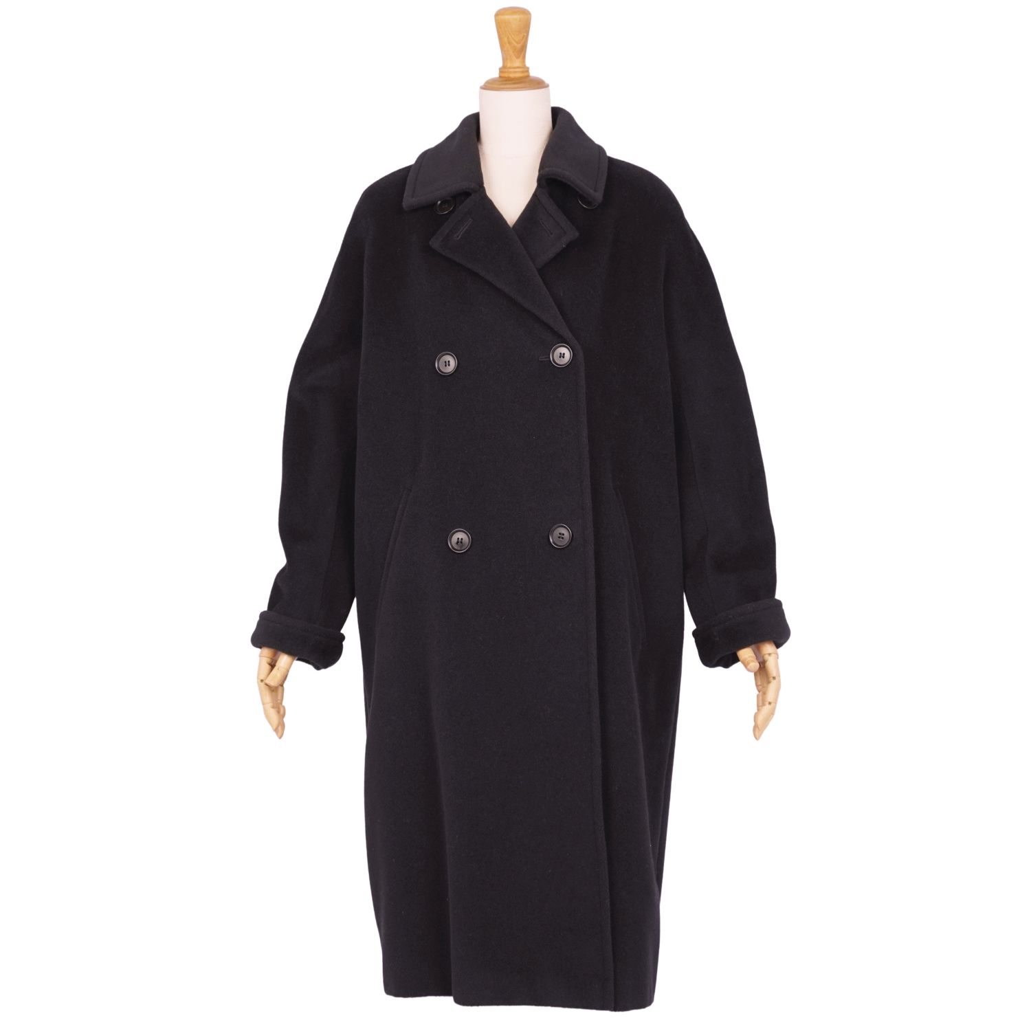 マックスマーラ Max Mara コート ロングコート ダブルブレスト ウール 無地 アウター レディース ブラック サイズJI40 USA6 FB38(M相当)