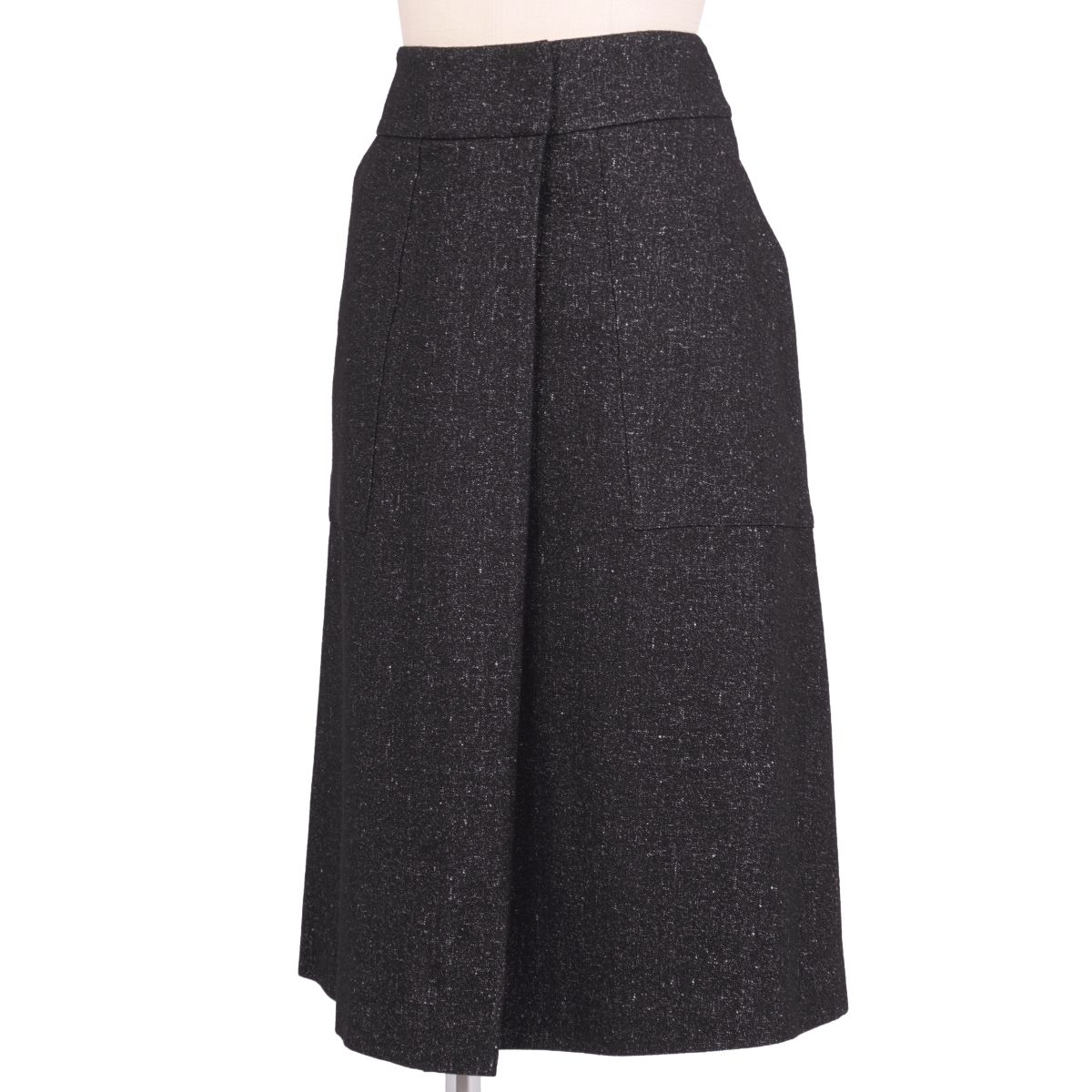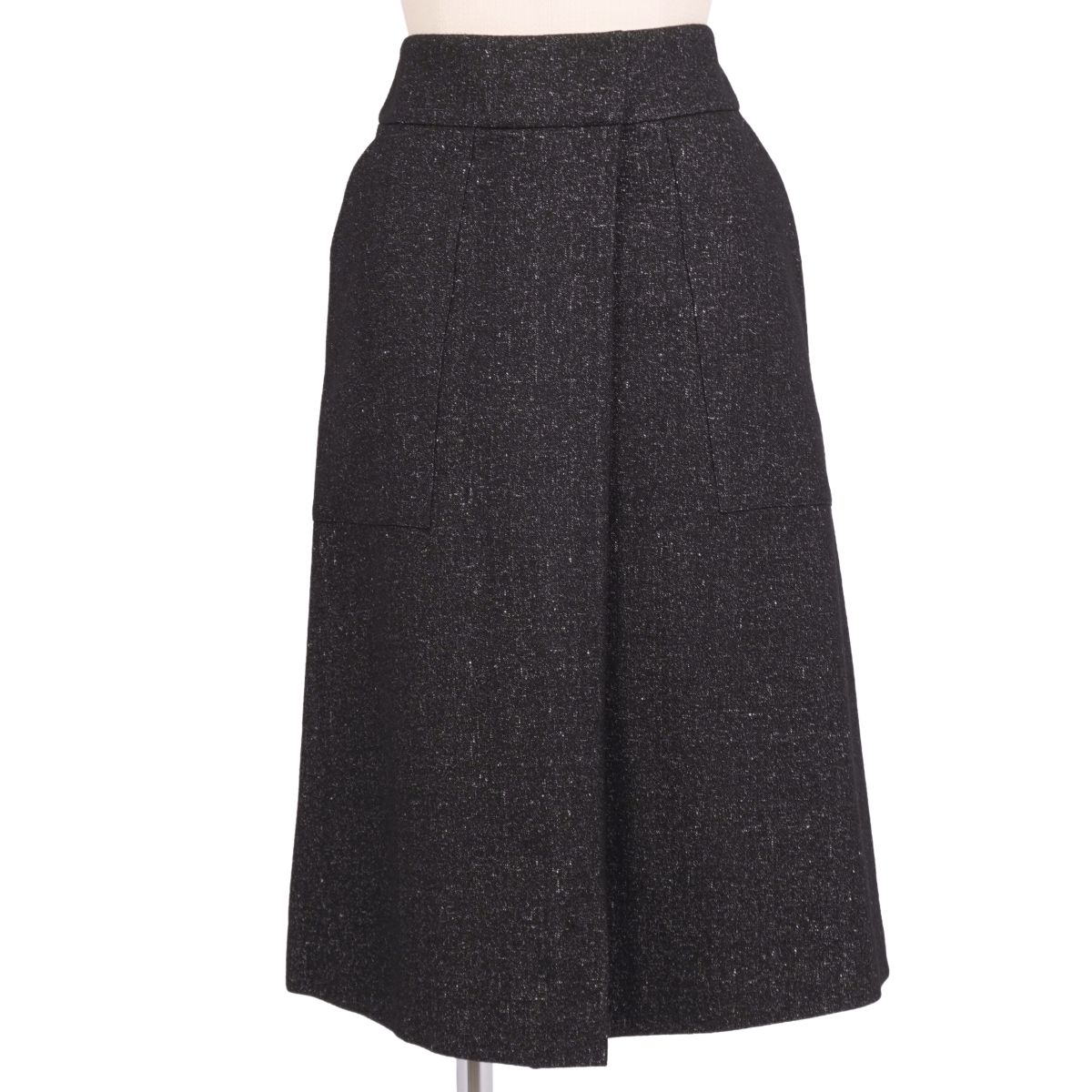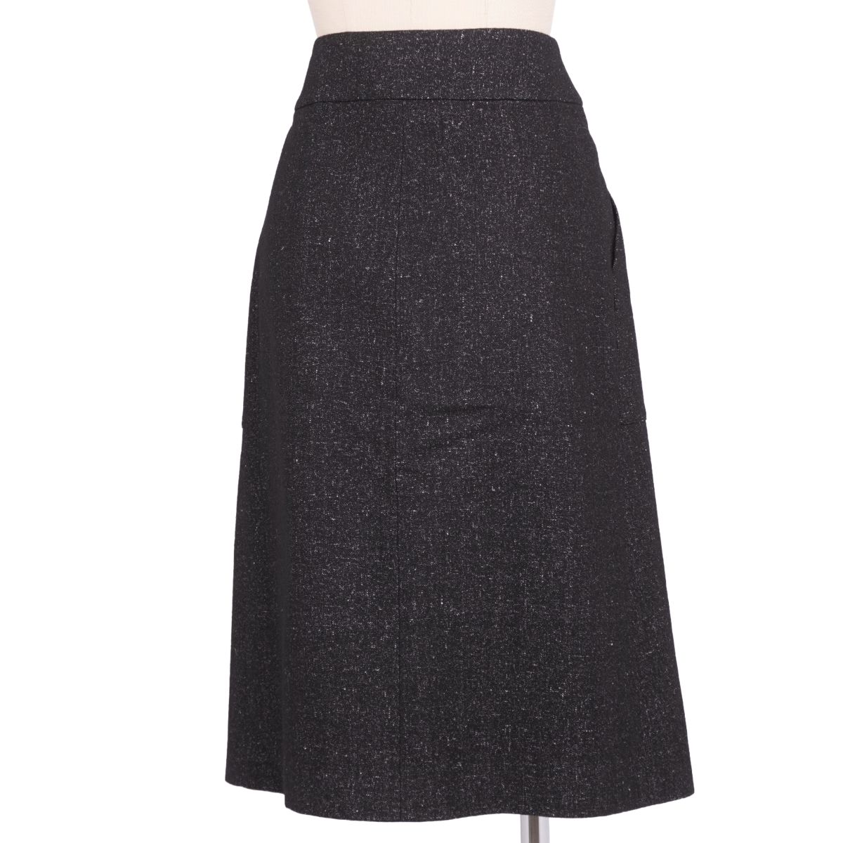 エルメス HERMES スカート ウール リネン ボトムス レディース フランス製 ブラック サイズ36(S相当)
