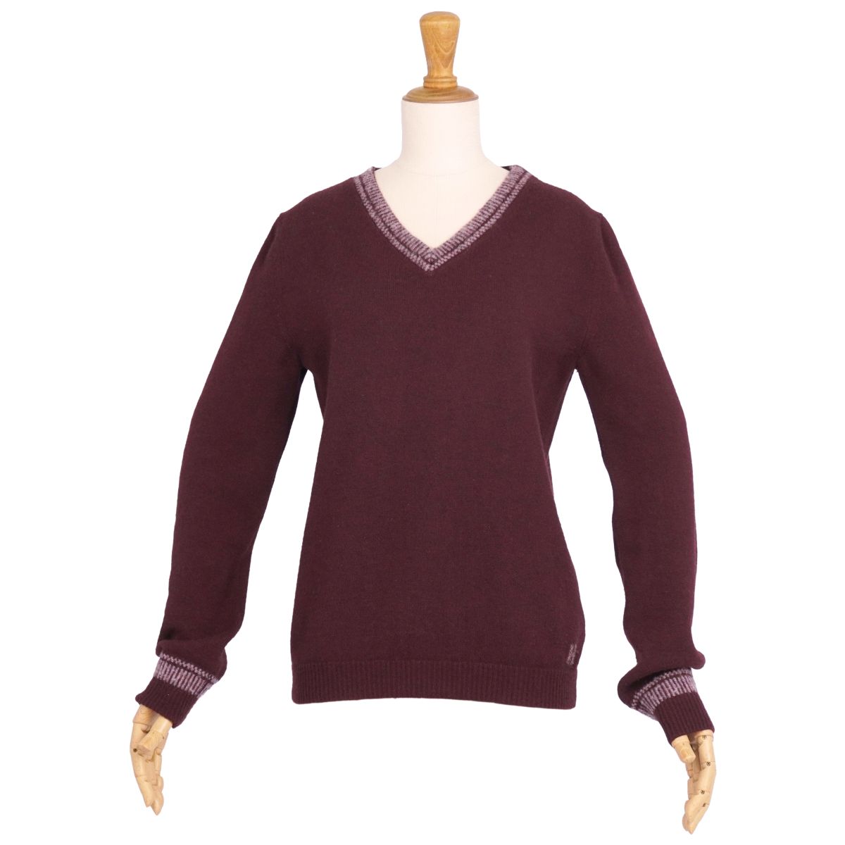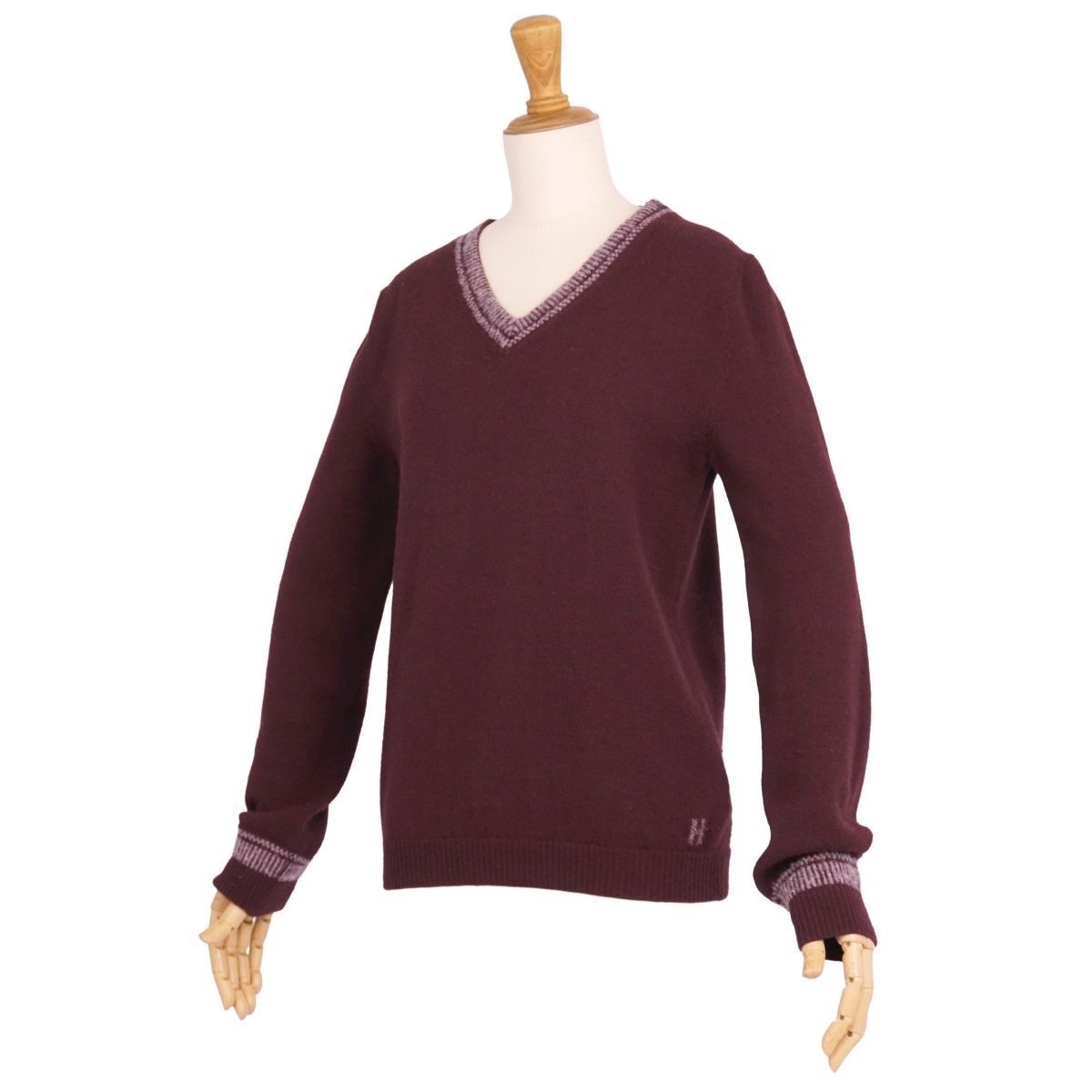 エルメス HERMES ニット セーター ロングスリーブ 長袖 ウール トップス レディース イタリア製 ボルドー サイズ34(S相当)