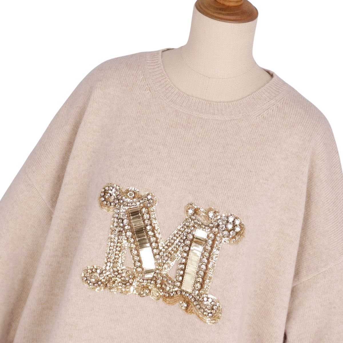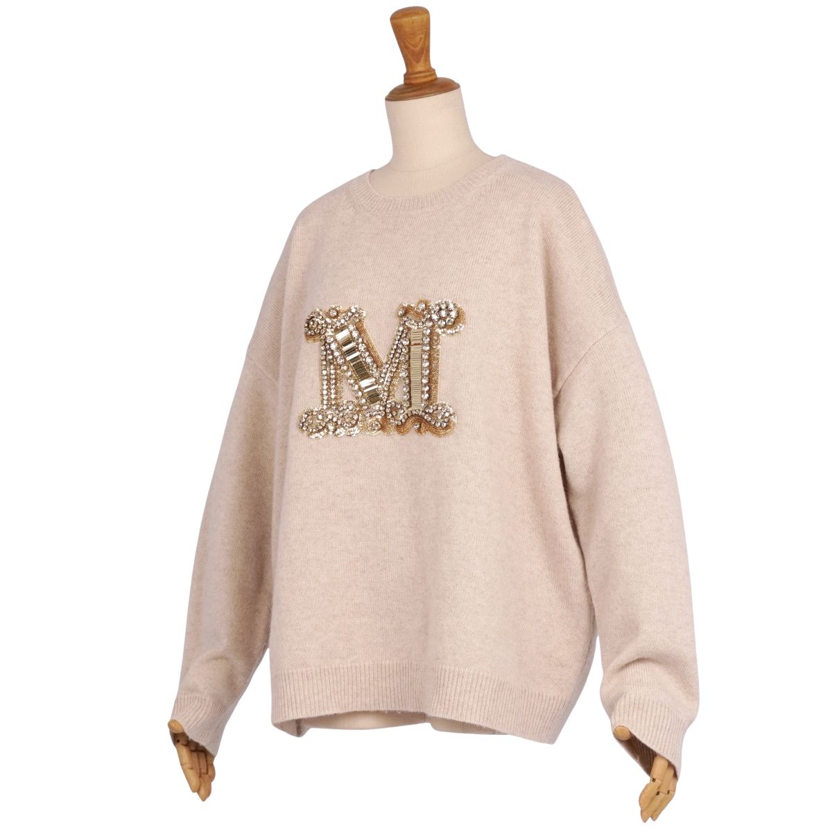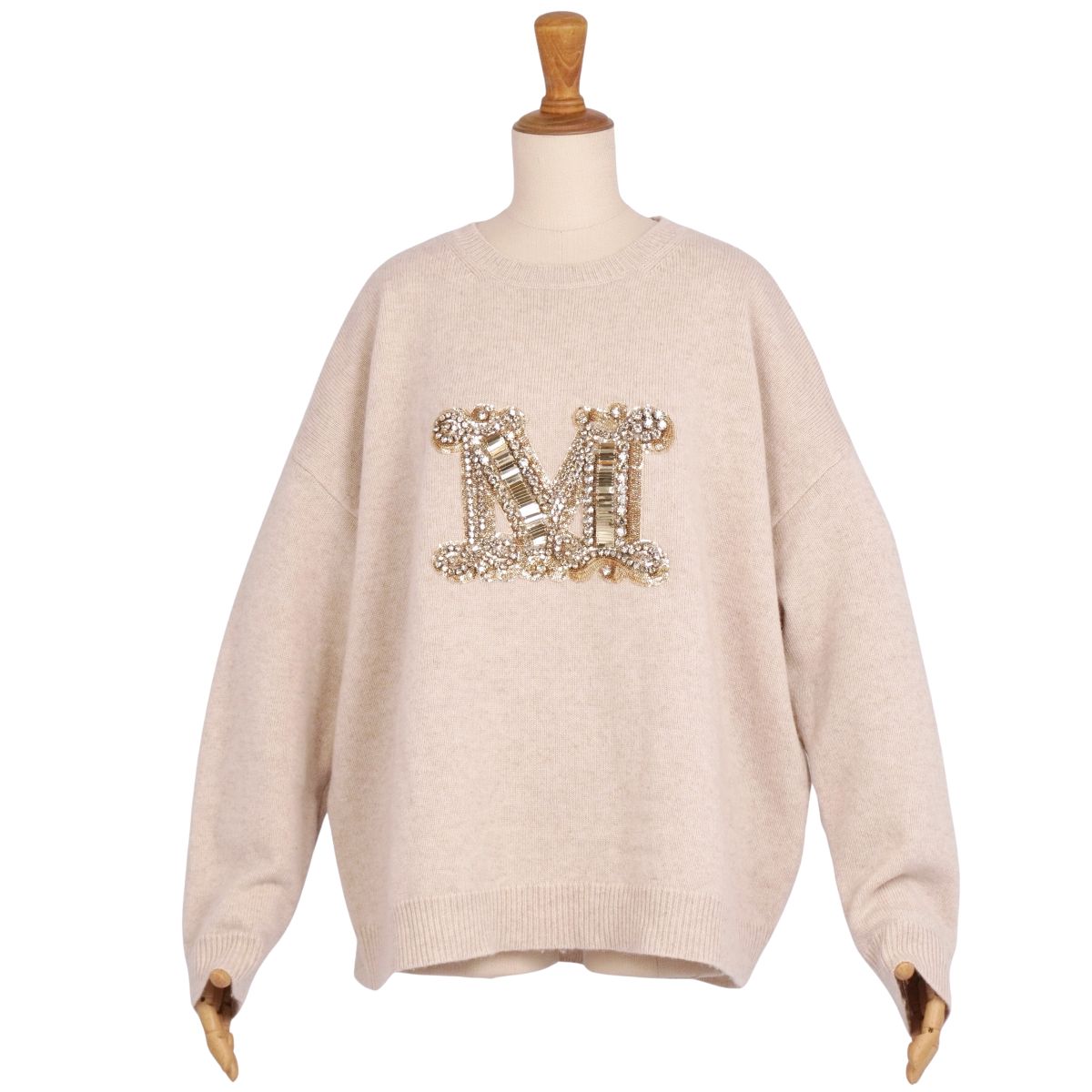 マックスマーラ Max Mara ニット セーター PALATO Mロゴ ビジュー装飾 ウール カシミヤ トップス レディース ベージュ サイズL
