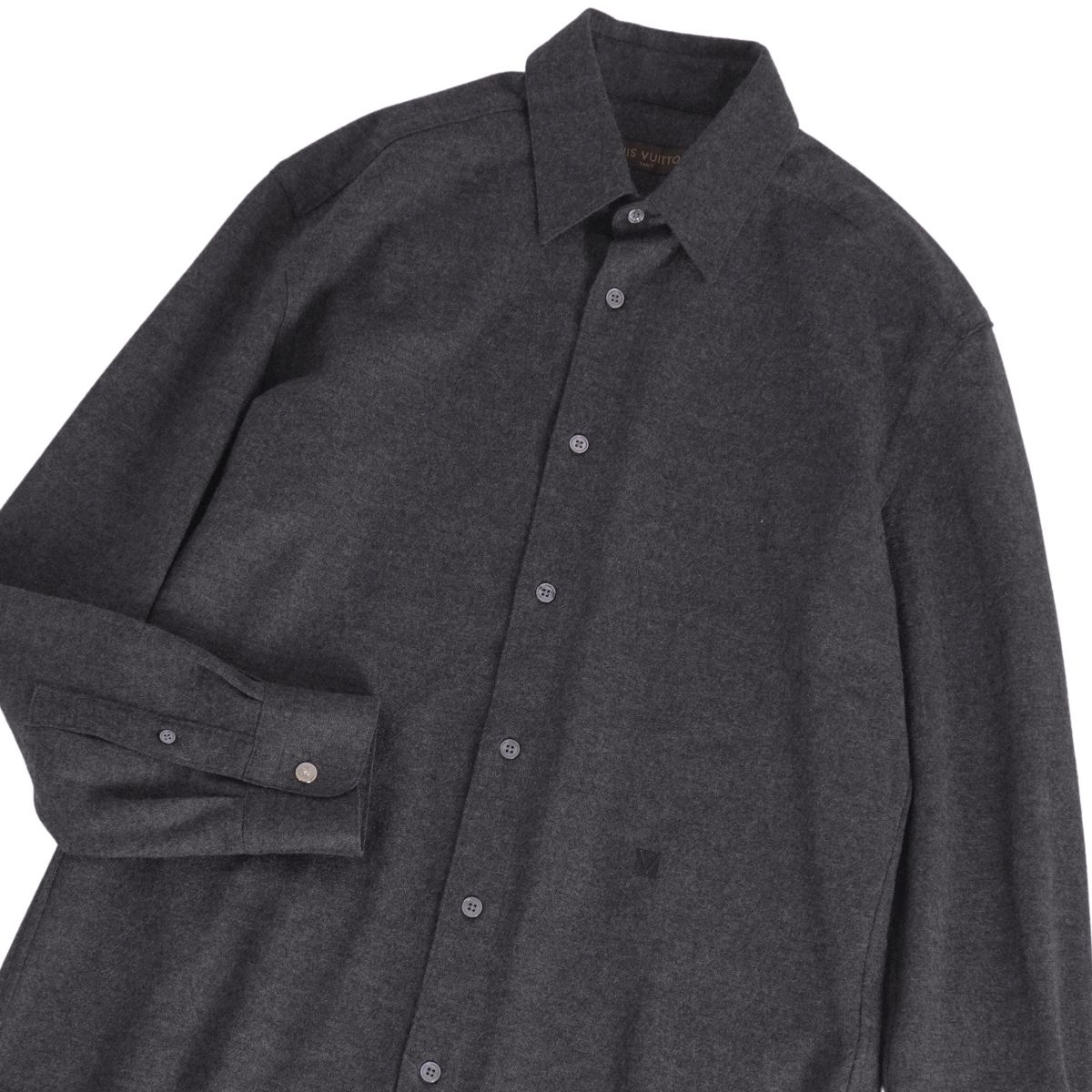 ルイヴィトン LOUIS VUITTON シャツ フランネルシャツ ロングスリーブ 長袖 ウール トップス メンズ イタリア製 ダークグレー サイズS