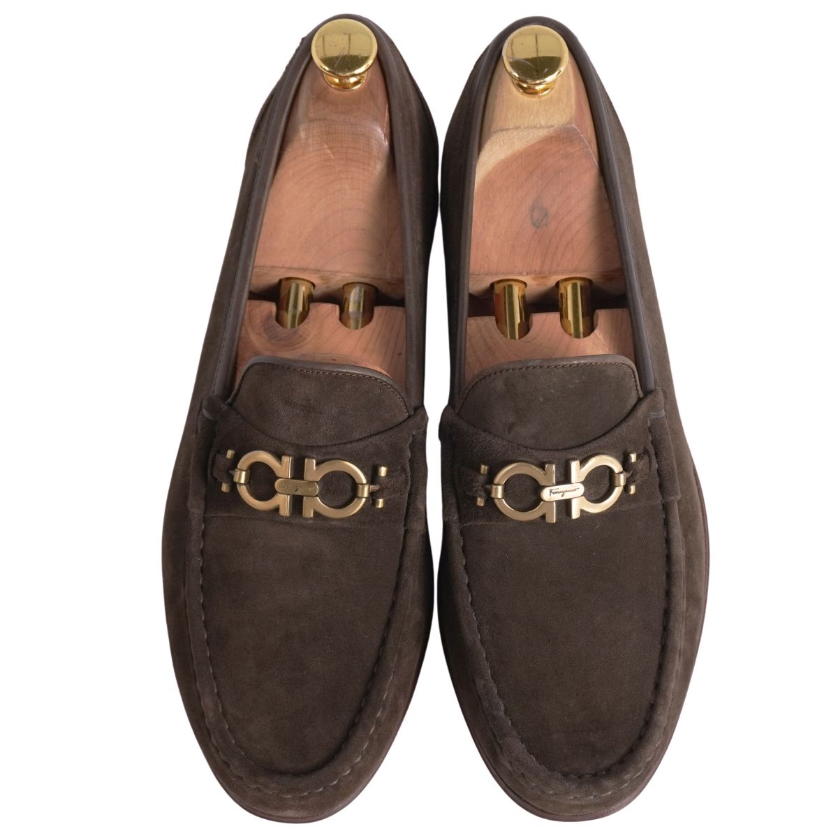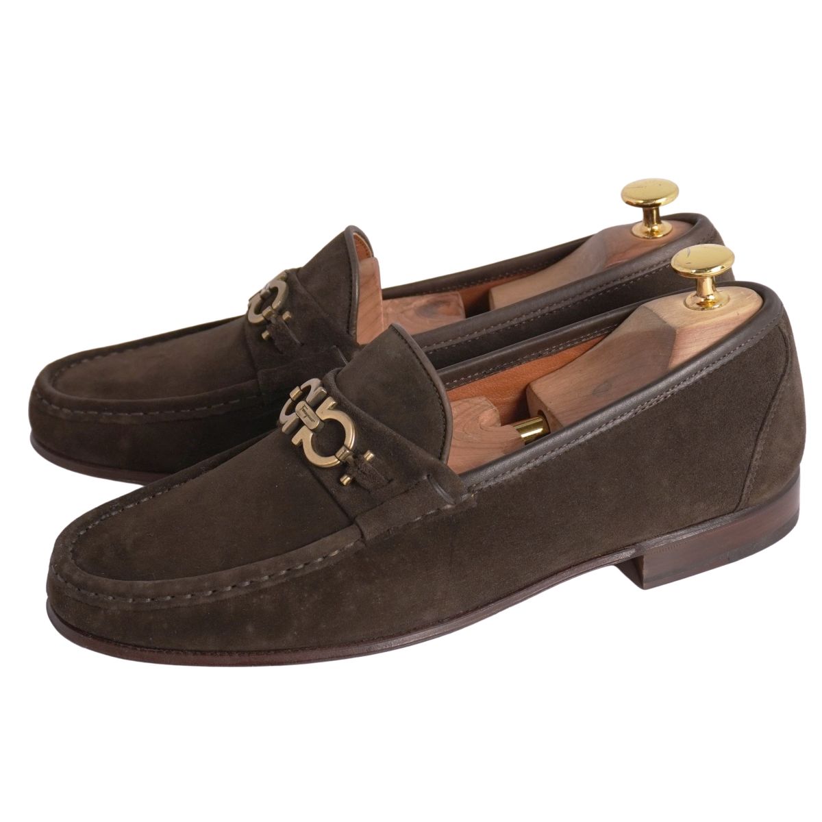 サルヴァトーレ フェラガモ Salvatore Ferragamo ローファー モカシン ガンチーニ スウェードレザー シューズ 靴 メンズ イタリア製 ブラウン サイズ8.5EE(26.5cm相当)