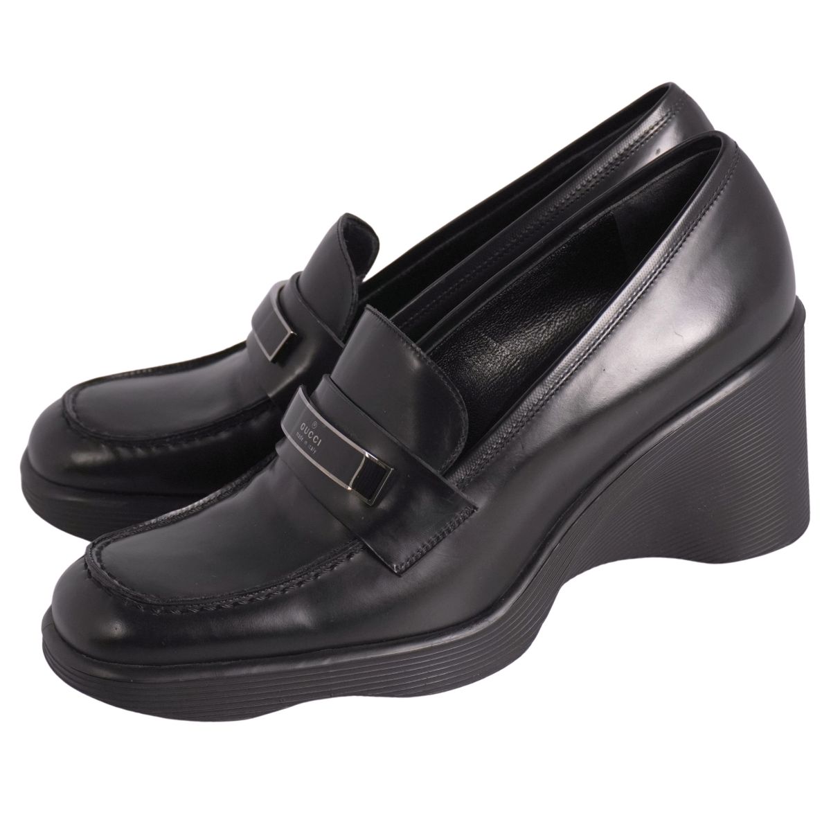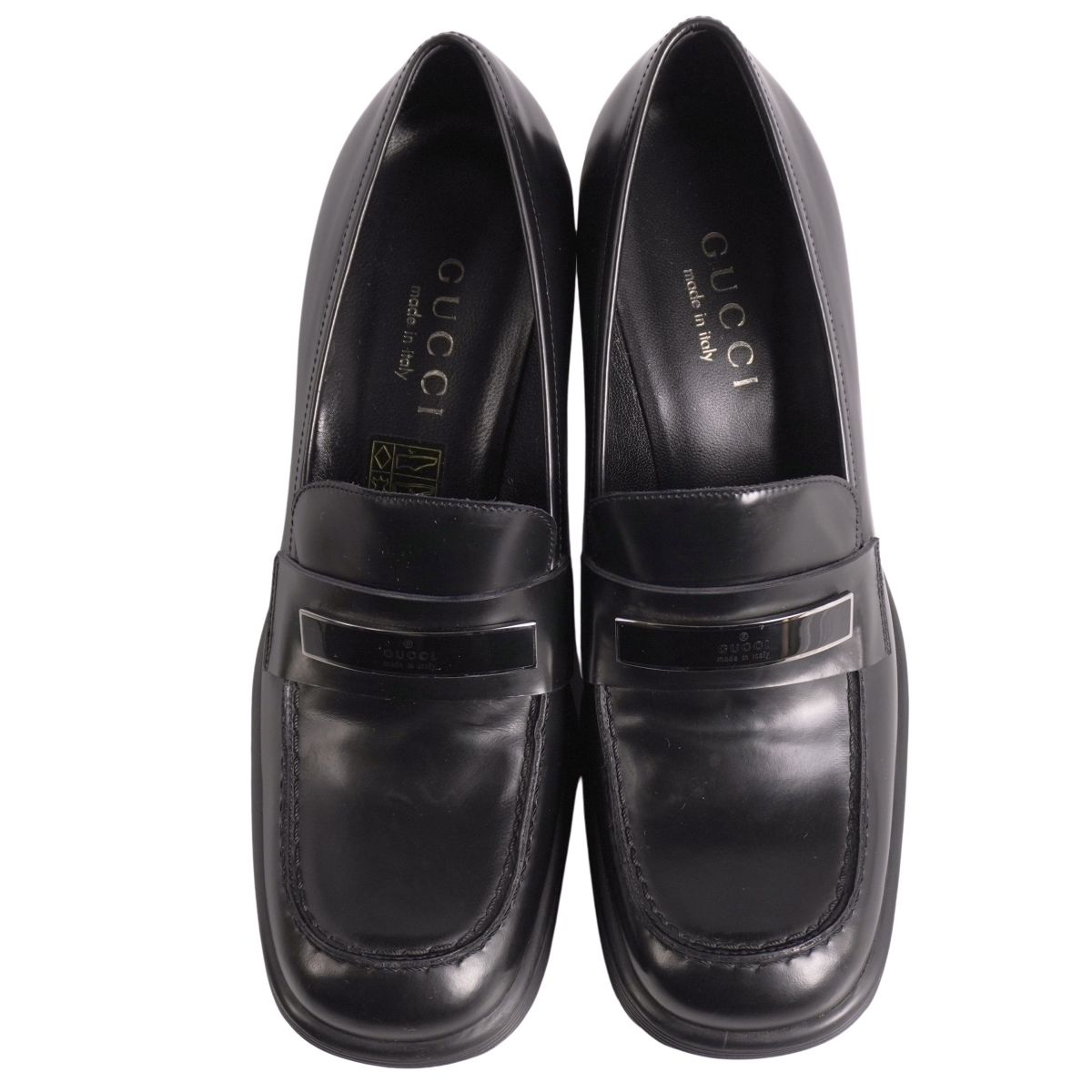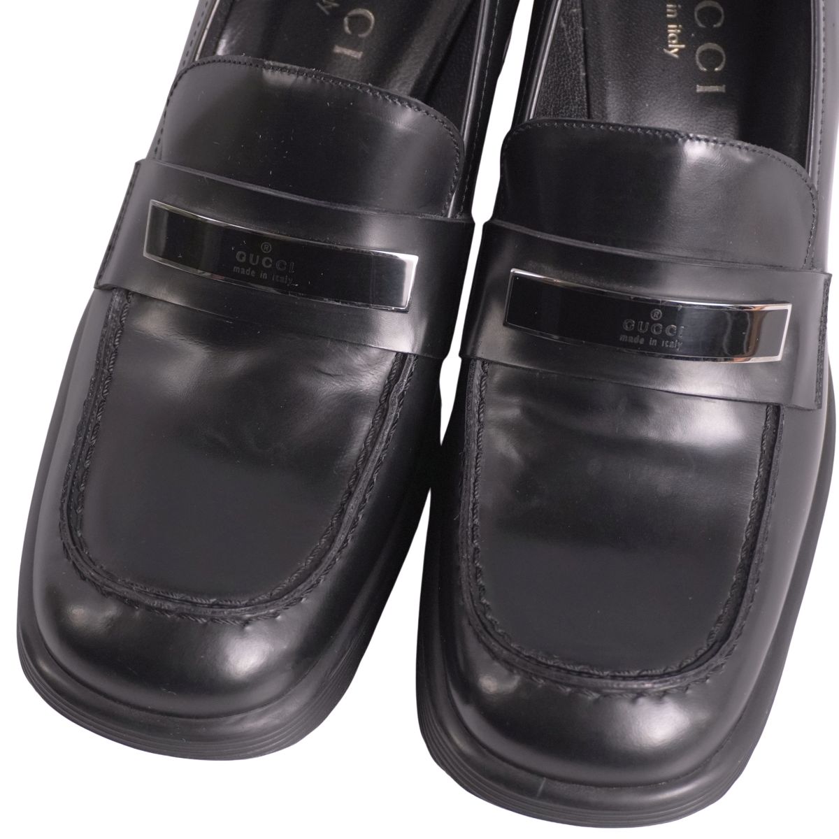 グッチ GUCCI ローファー モカシン プレート レザー シューズ 靴 レディース イタリア製 ブラック サイズ36(23cm相当)