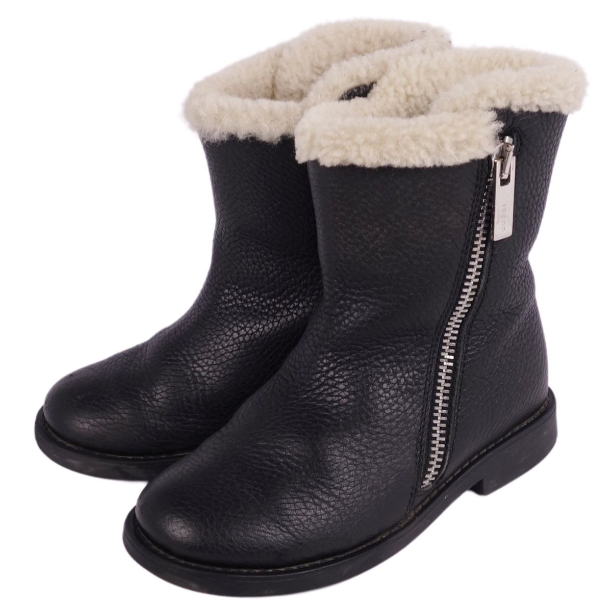 グッチ GUCCI ブーツ ムートンブーツ ムートン カーフレザー シューズ 靴 キッズ イタリア製 ブラック サイズ26 16cm相当