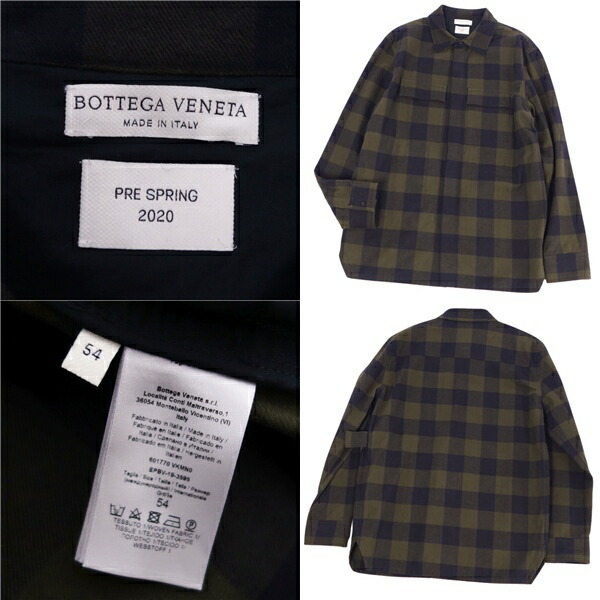 ボッテガヴェネタ BOTTEGA VENETA シャツ 2020SS ネルシャツ ジャケット チェック コットン トップス メンズ イタリア製 グリーン/ブラック サイズ54(XL相当)