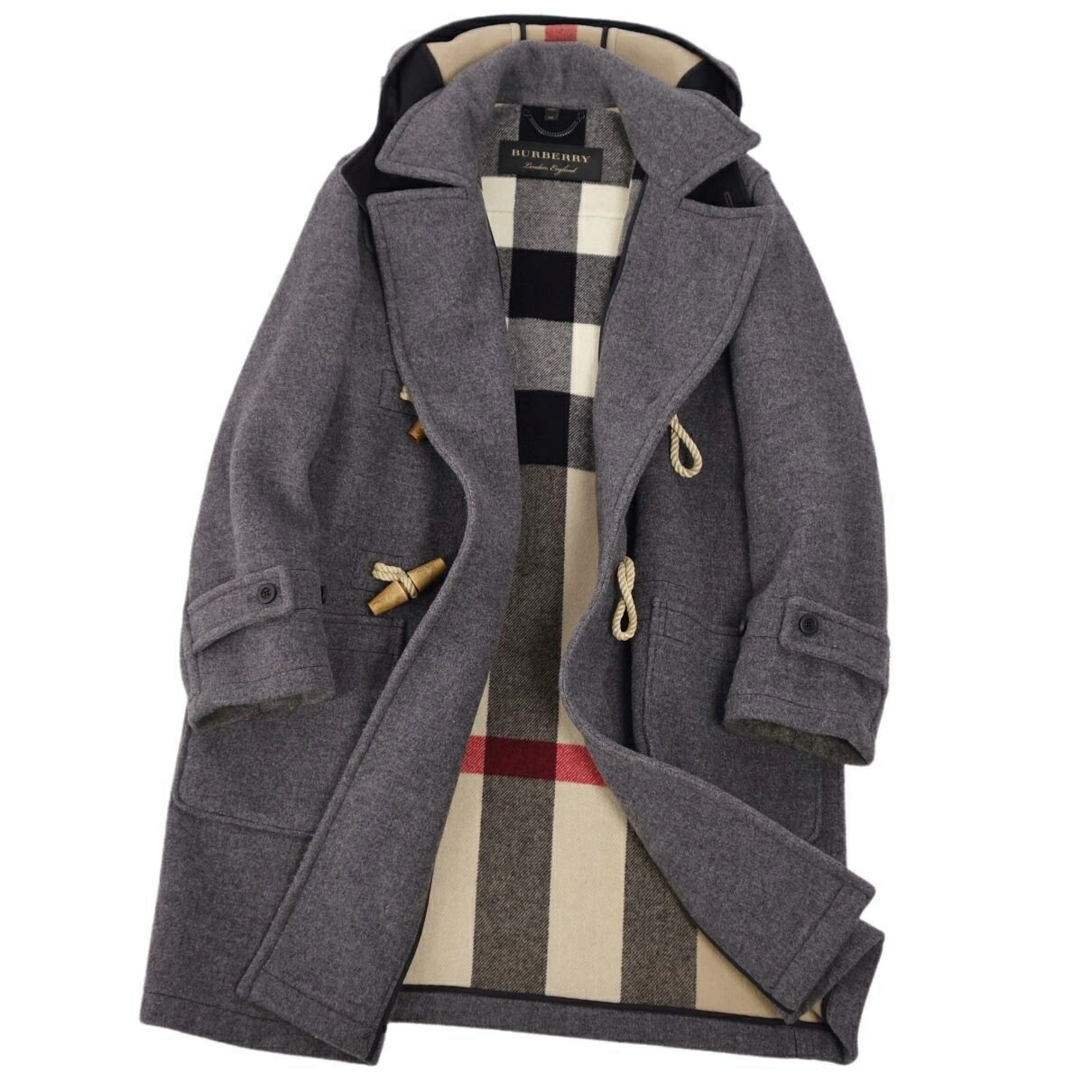 | 商品名 | バーバリー BURBERRY コート ダッフルコート フード フーディー 裏チェック ウール アウター メンズ 44(XS相当) グレー【中古】 |