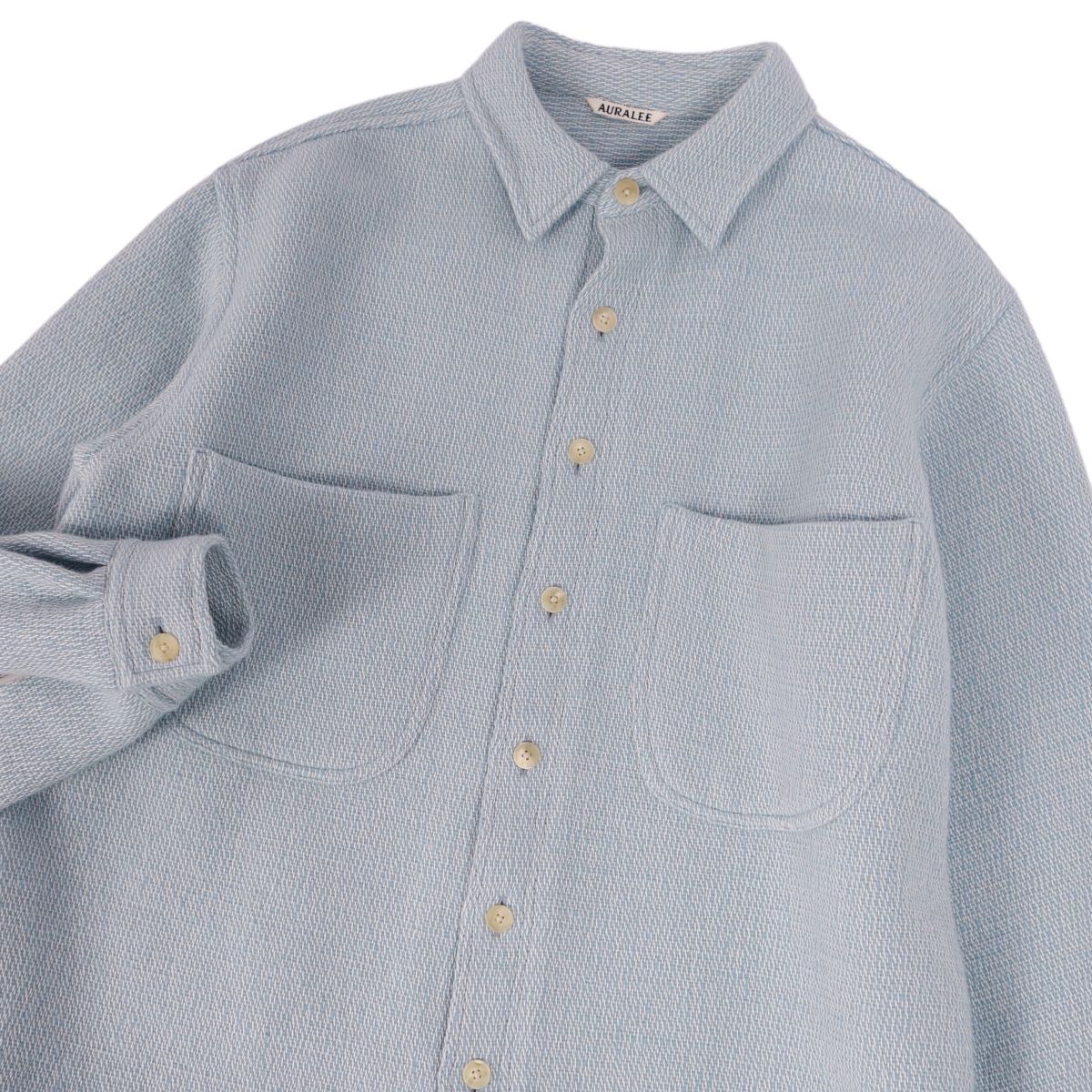 オーラリー AURALEE シャツ ジャケット 無地 ウール コットン アウター メンズ ライトブルー サイズ4(M相当)