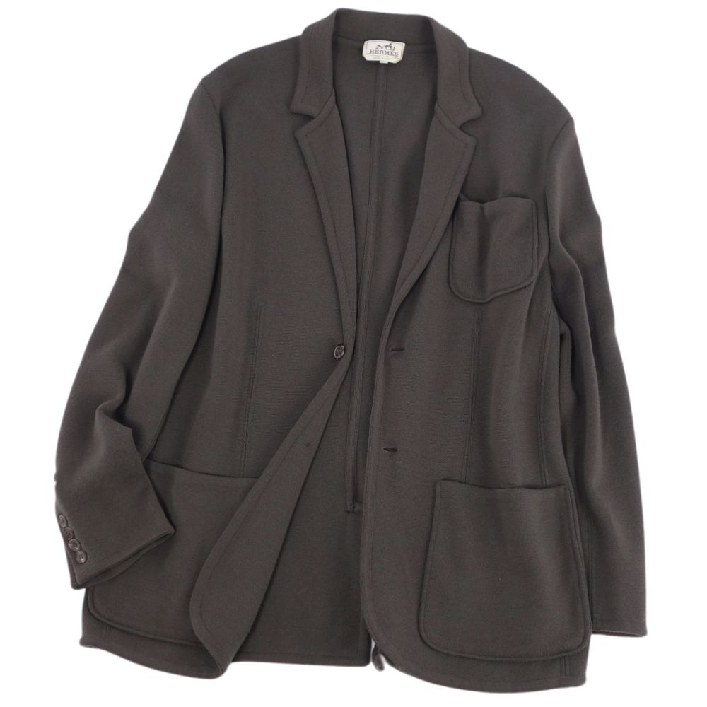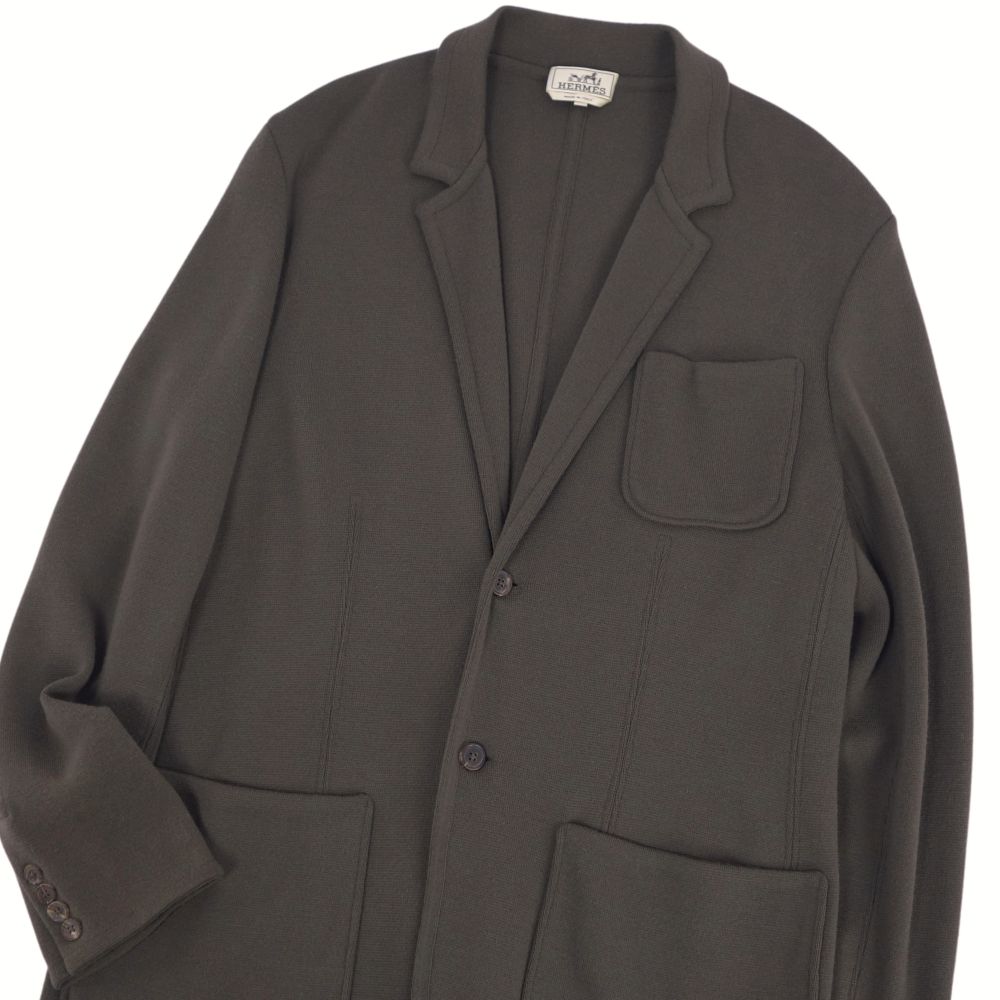 エルメス HERMES ジャケット テーラード ニット ウール アウター メンズ イタリア製 カーキ サイズXL
