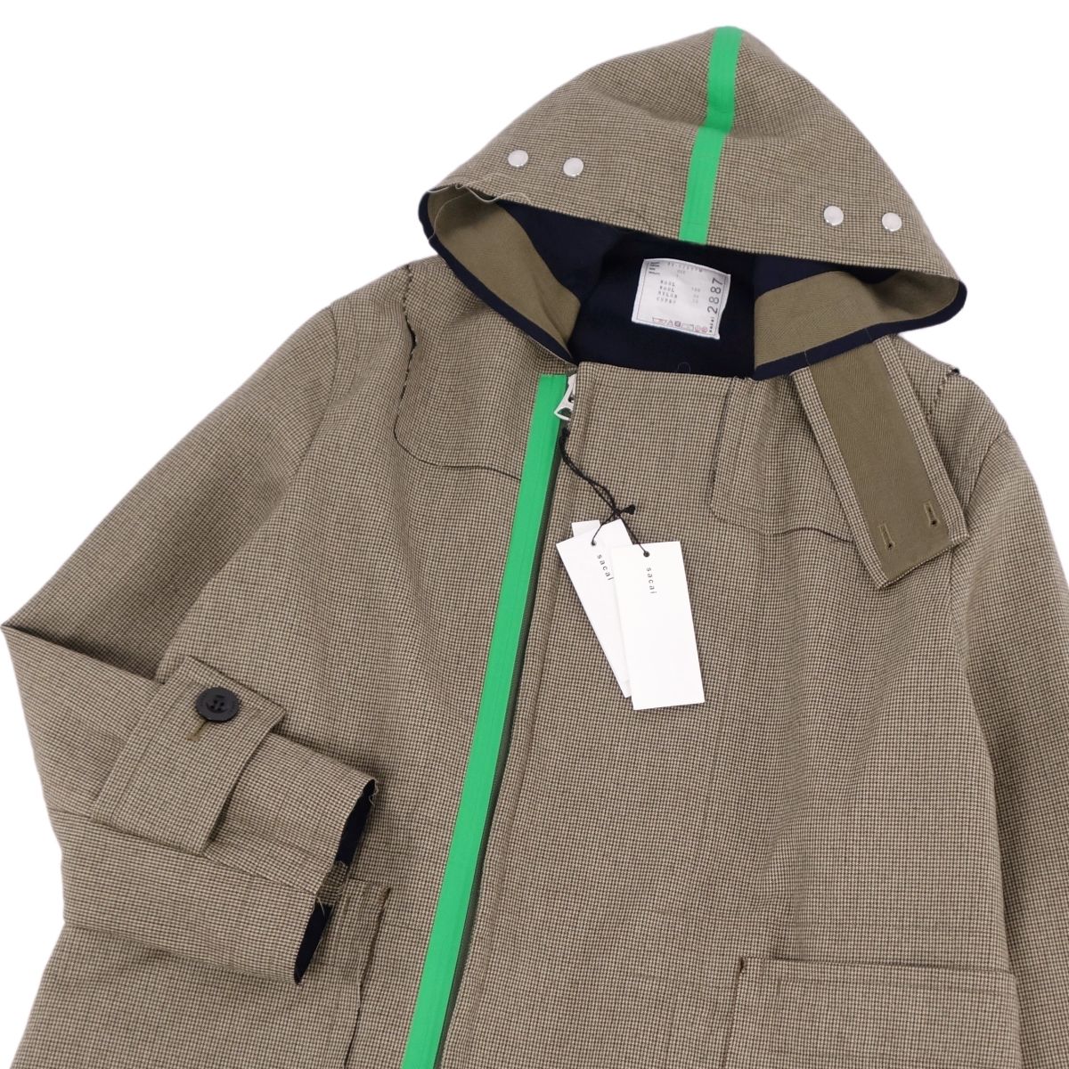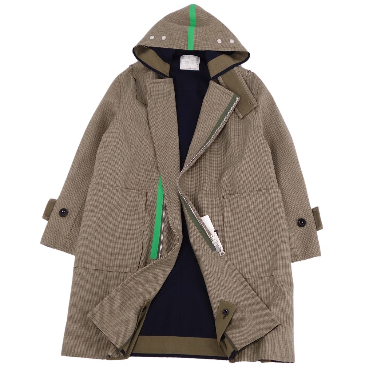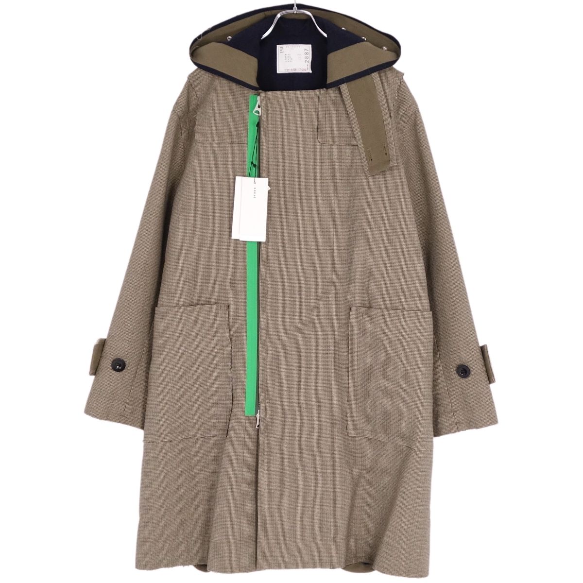 ・肌触りの良いウール素材を使用した、Sacaiのボンディングフーデッドロングコート「Check Bonding Coat」です♪
