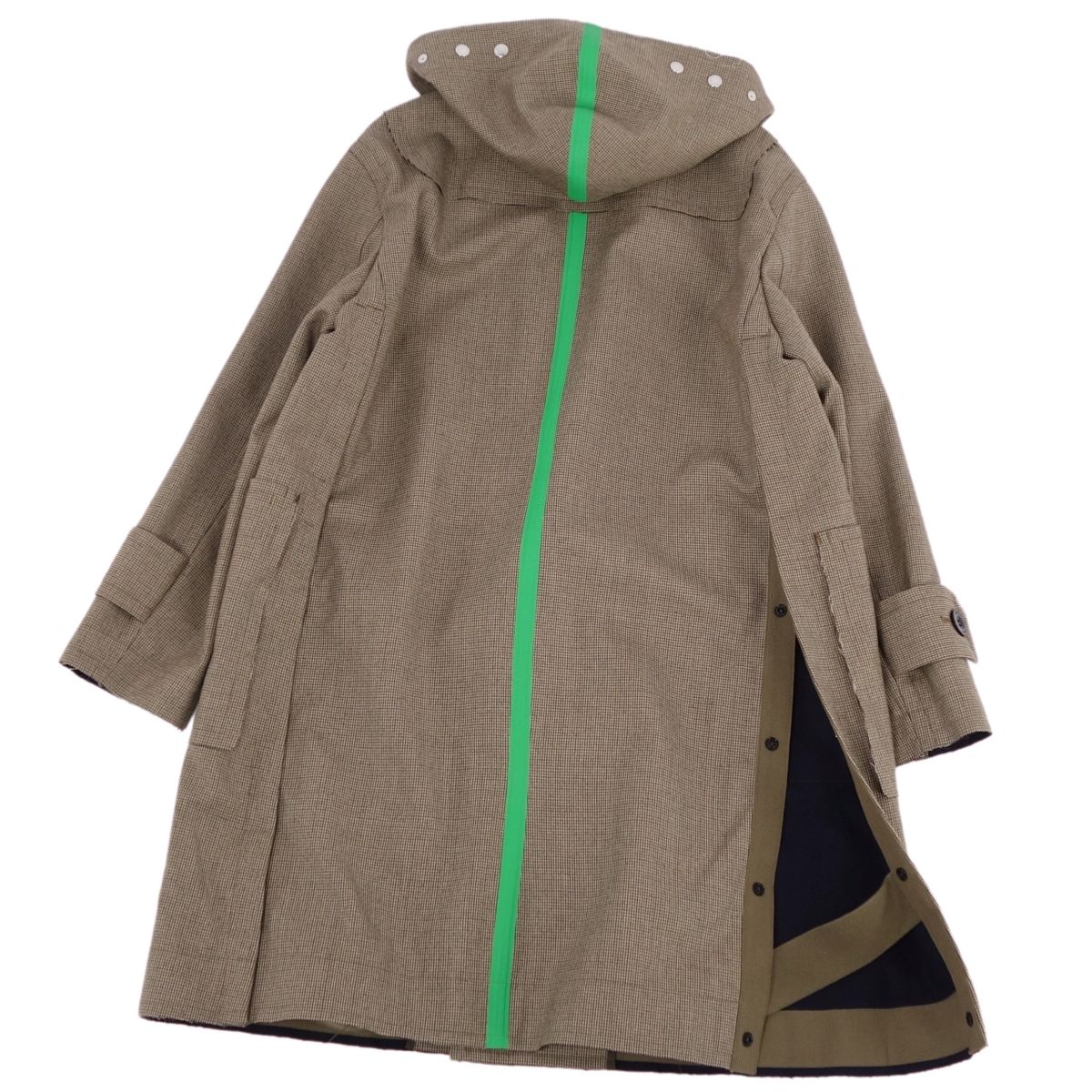 サカイ Sacai コート ロングコート 22AW Check Bonding Coat フーディー フード 千鳥格子 アウター メンズ ブラウン サイズ1(S相当)