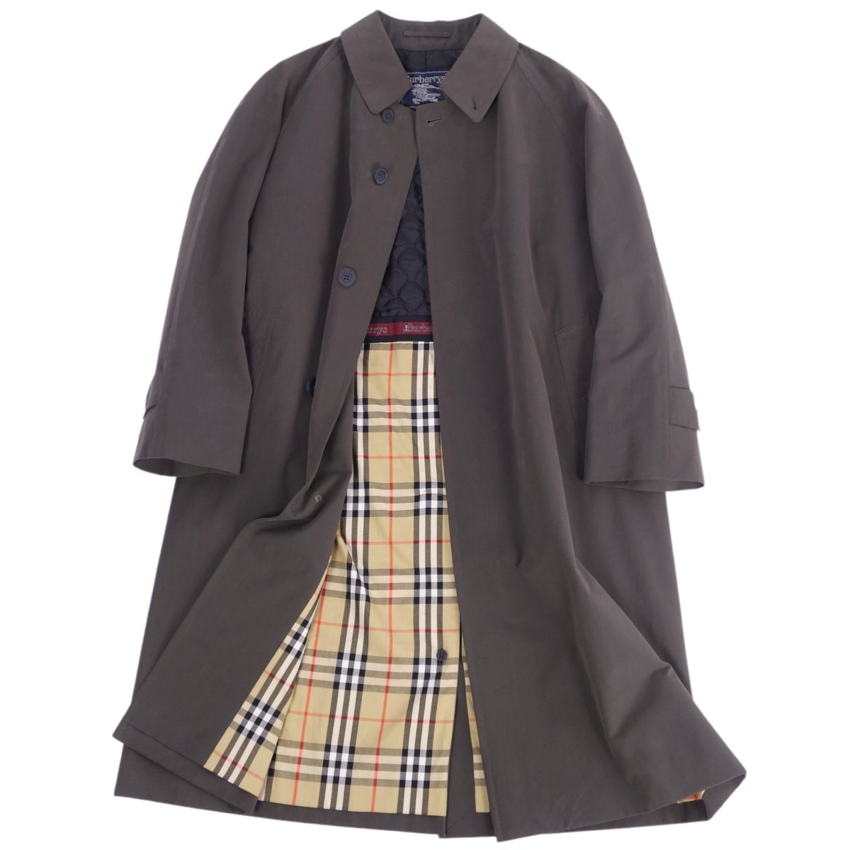 商品名 【極美品】Vintage バーバリー Burberrys コート ステンカラーコート バルマカーンコート 裏チェック 中綿入り アウター メンズ 90-165-4(S相当) グレー【中古】