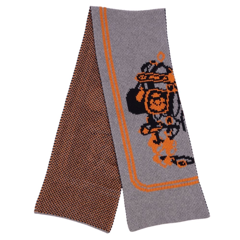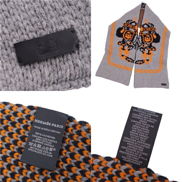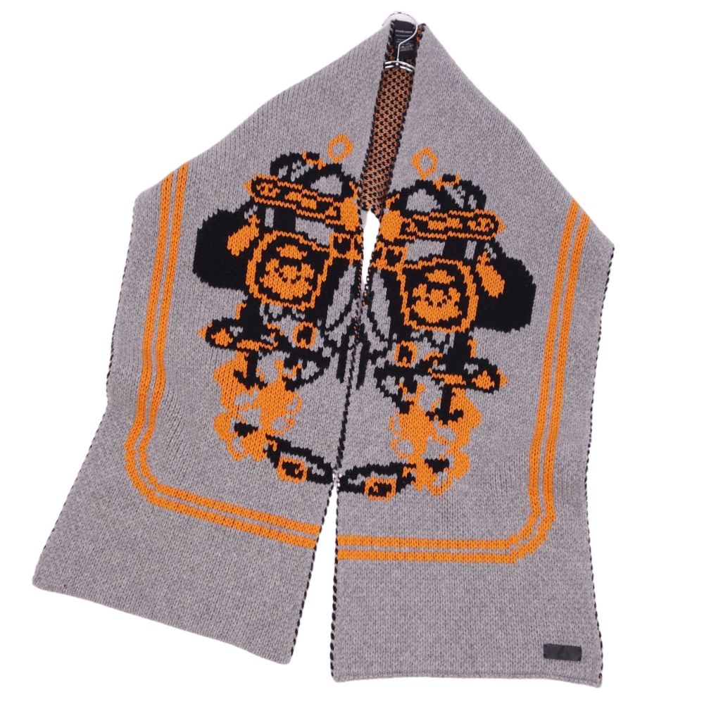 エルメス HERMES マフラー ストール BRIDES de GALA ブリッドドゥガラ ニット カシミヤ100% レディース グレー/オレンジ サイズ-