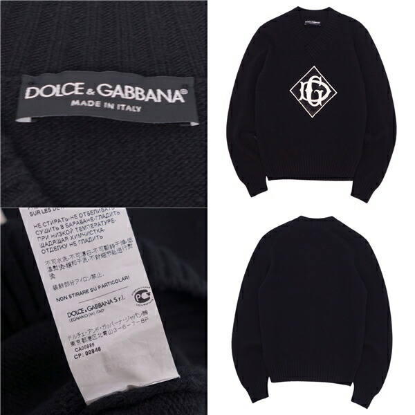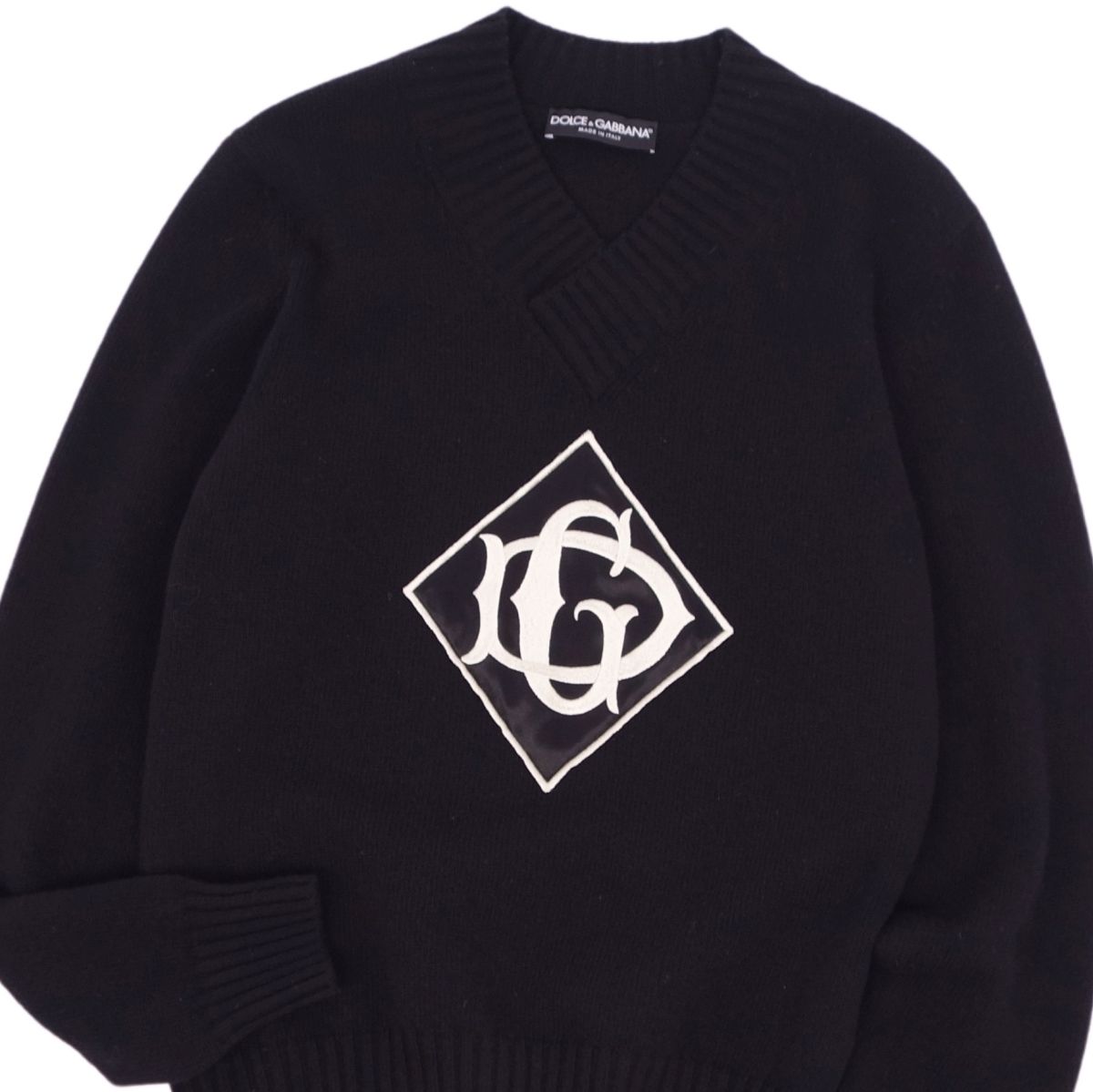 ドルチェ&ガッバーナ DOLCE&GABBANA ニット セーター Vネック ロングスリーブ 長袖 ロゴ刺繍 ウール トップス メンズ ブラック サイズ44(XS相当)