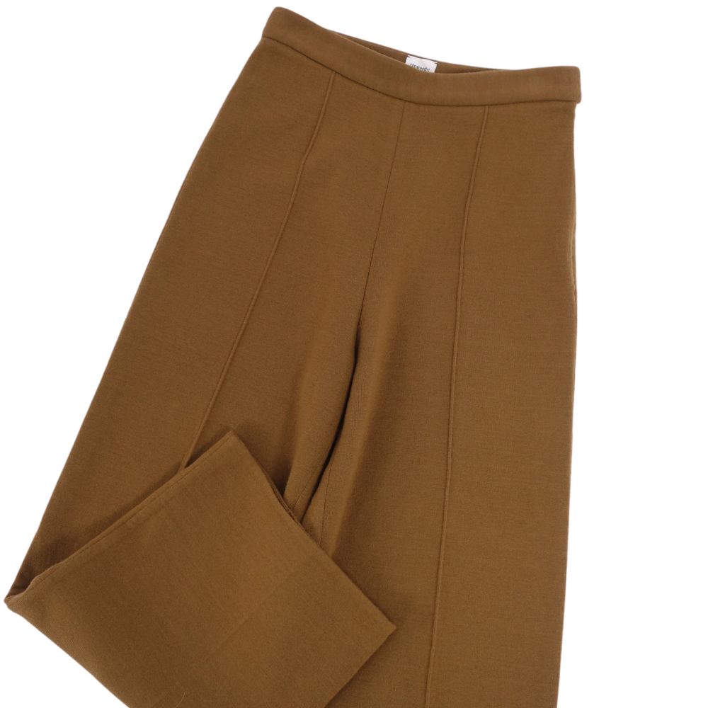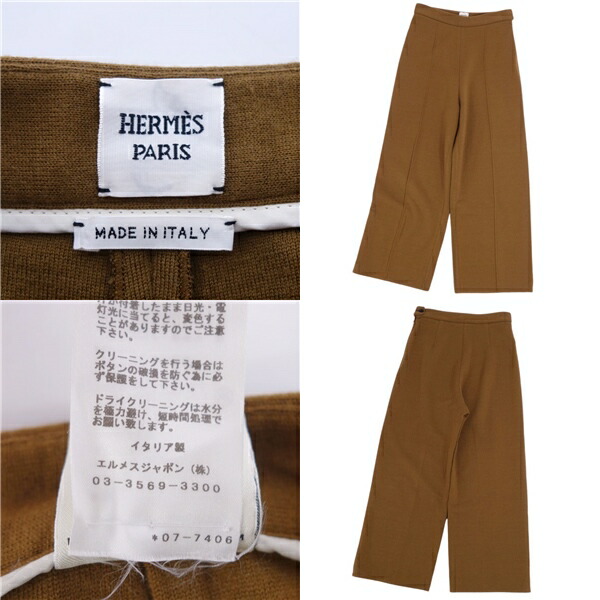 エルメス HERMES パンツ ロングパンツ ワイドパンツ ウール ニット ボトムス レディース イタリア製 ブラウン サイズ34(S相当)