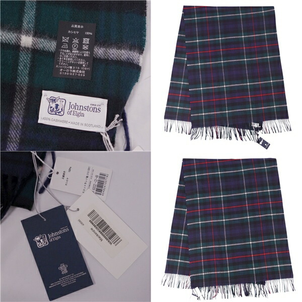 【新品同様】ジョンストンズ オブ エルガン Johnstons of Elgin マフラー ストール ショール チェック柄 カシミヤ100% スコットランド製 メンズ レディース マルチカラー【中古】