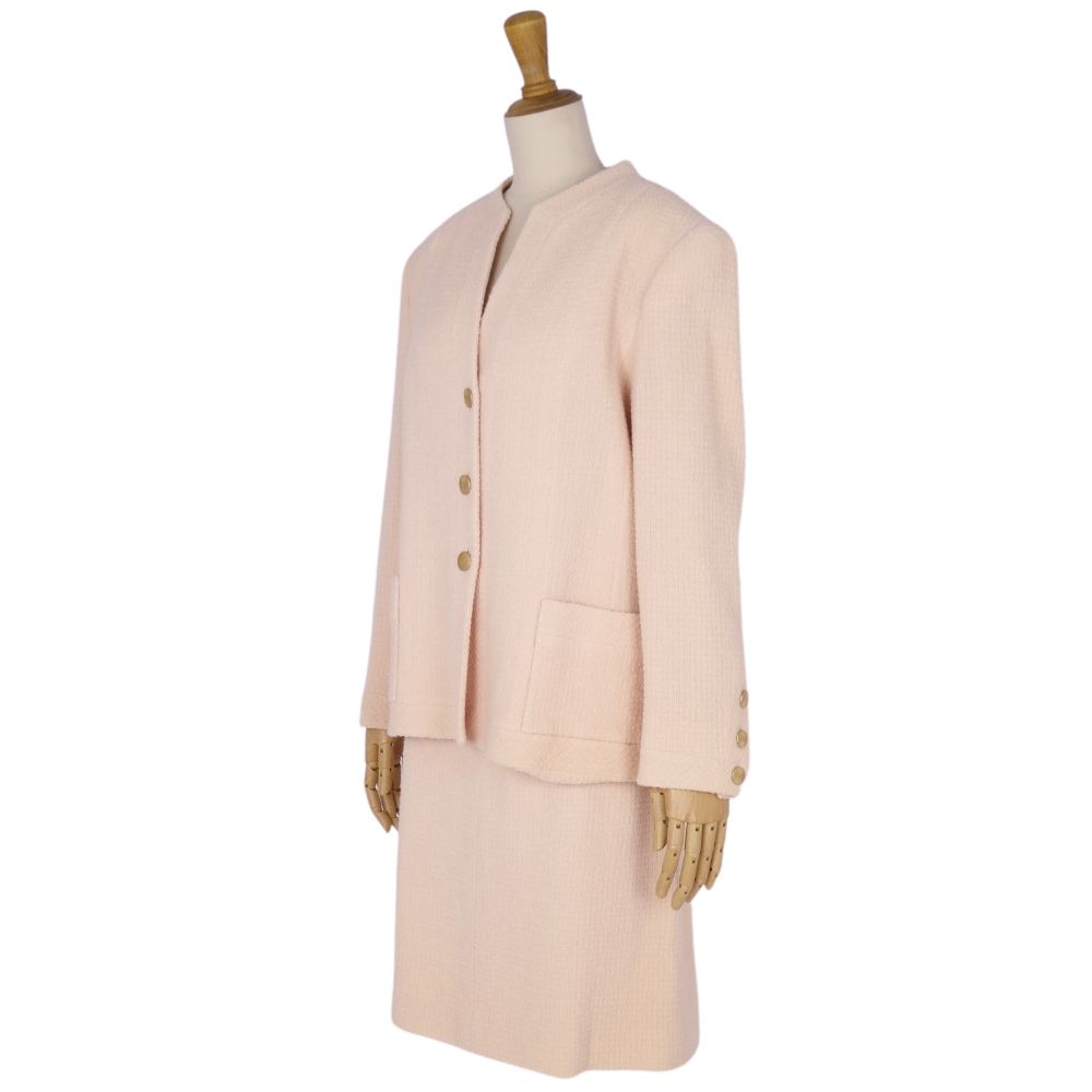 Vintage シャネル CHANEL セットアップ 98P スカートスーツ ウール ツイード ココマークボタン ジャケット スカート レディース フランス製 ベージュ サイズ42(L相当)