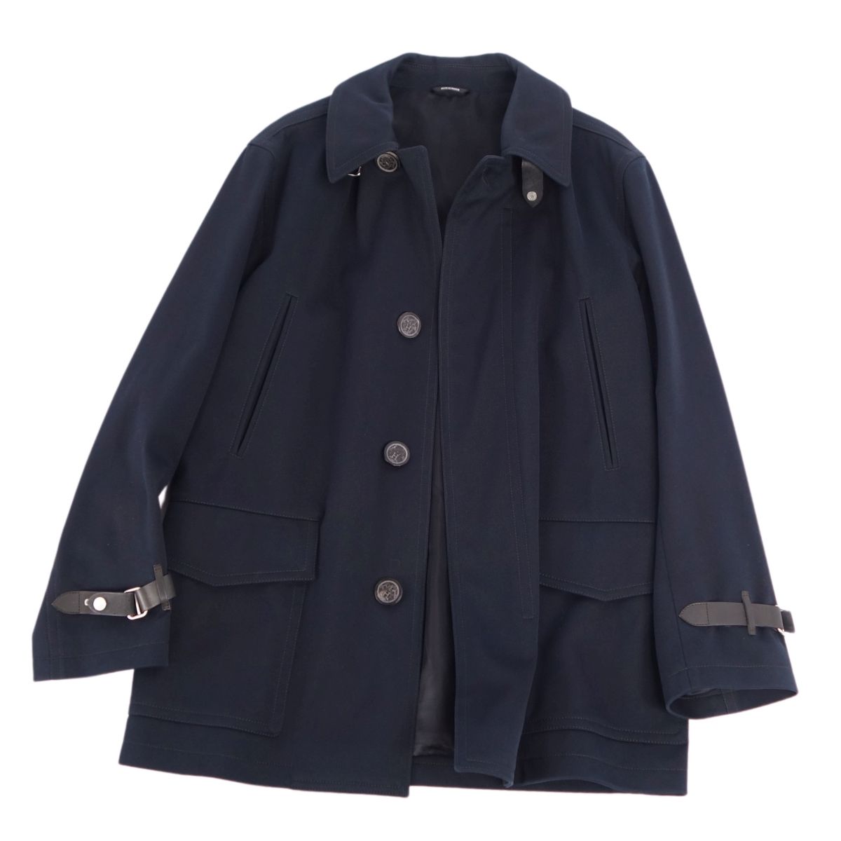 | 商品名 | 【美品】エルメス HERMES コート ボタンフライ エクスリブリス セリエボタン コットン レザー アウター メンズ 50(M相当) ネイビー【中古】 |