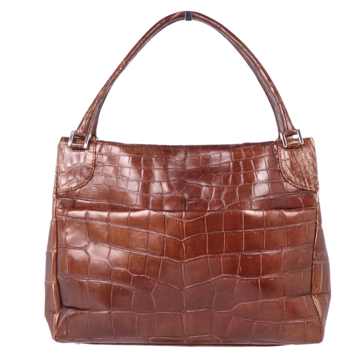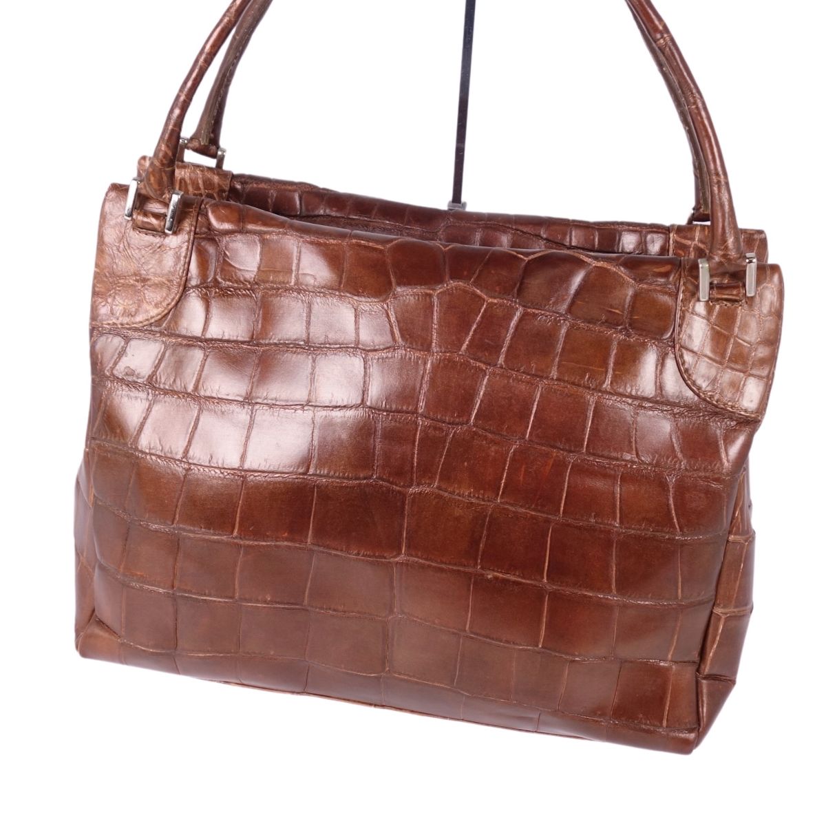 クロコダイル CROCODILE バッグ ハンドバッグ トートバッグ マットクロコ ワニ革 カバン レディース ブラウン サイズ-