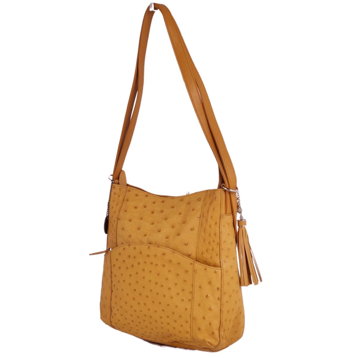 オーストリッチ OSTRICH JRA バッグ 2way ハンドバッグ トートバッグ エキゾチックレザー タッセル カバン 鞄 レディース マスタード サイズ-