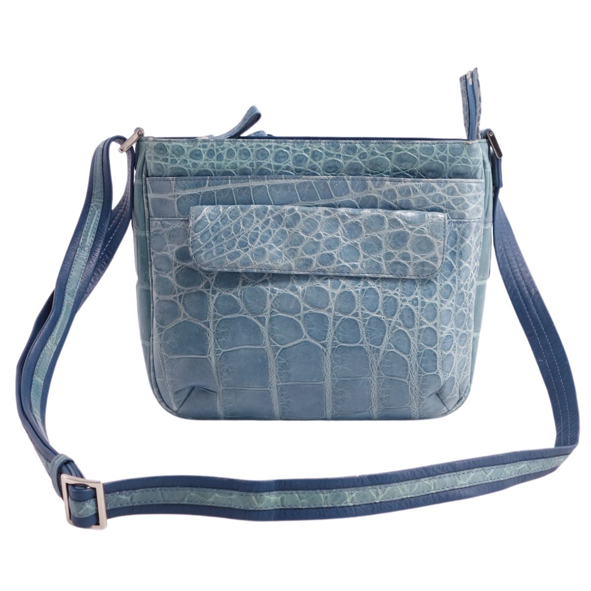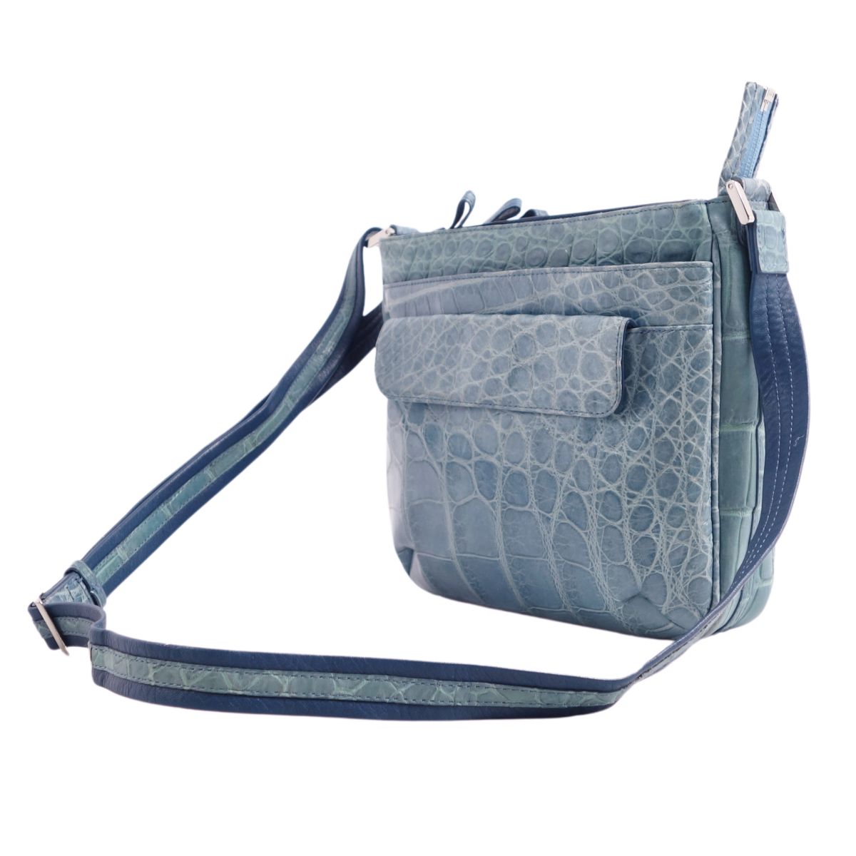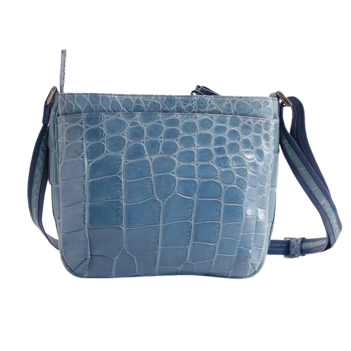 【美品】クロコダイル CROCODILE バッグ ショルダーバッグ マットクロコ ワニ革 カバン レディース ターコイズブルー【中古】