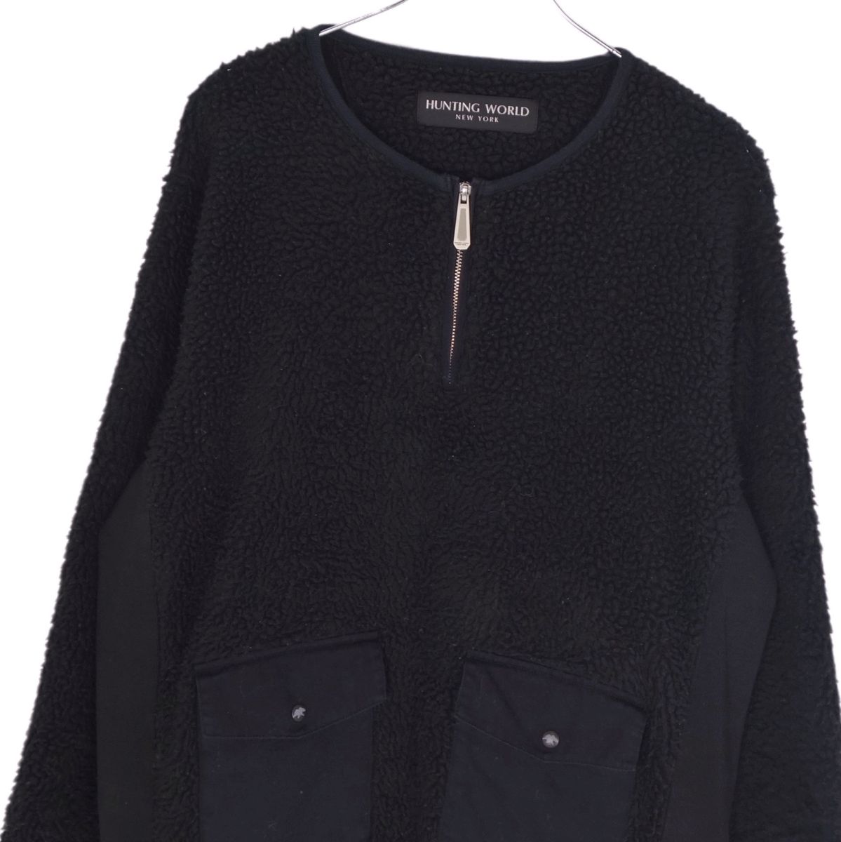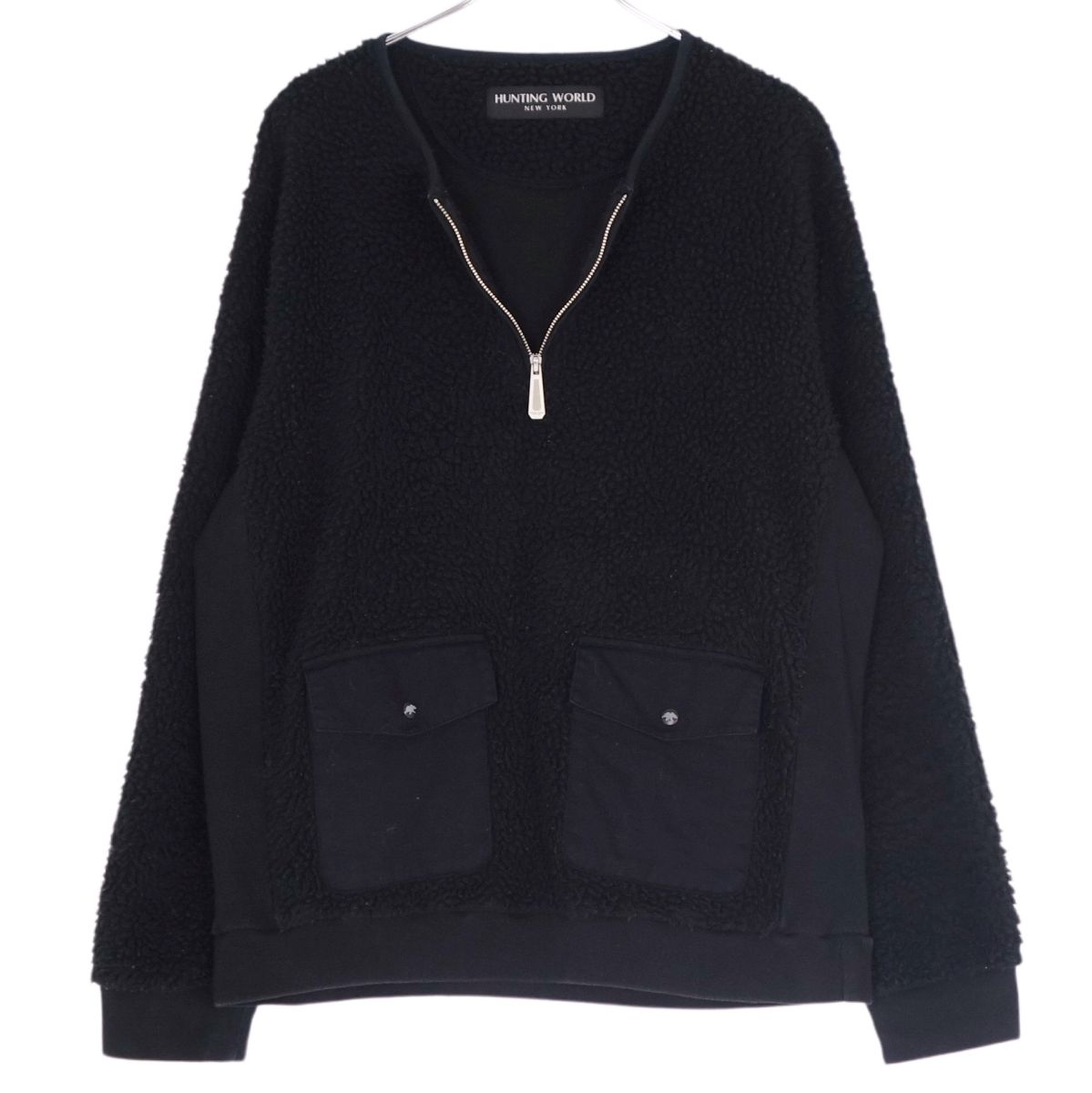 ハンティングワールド HUNTING WORLD フリース プルオーバー 無地 ポリエステル アウター メンズ ブラック サイズXL