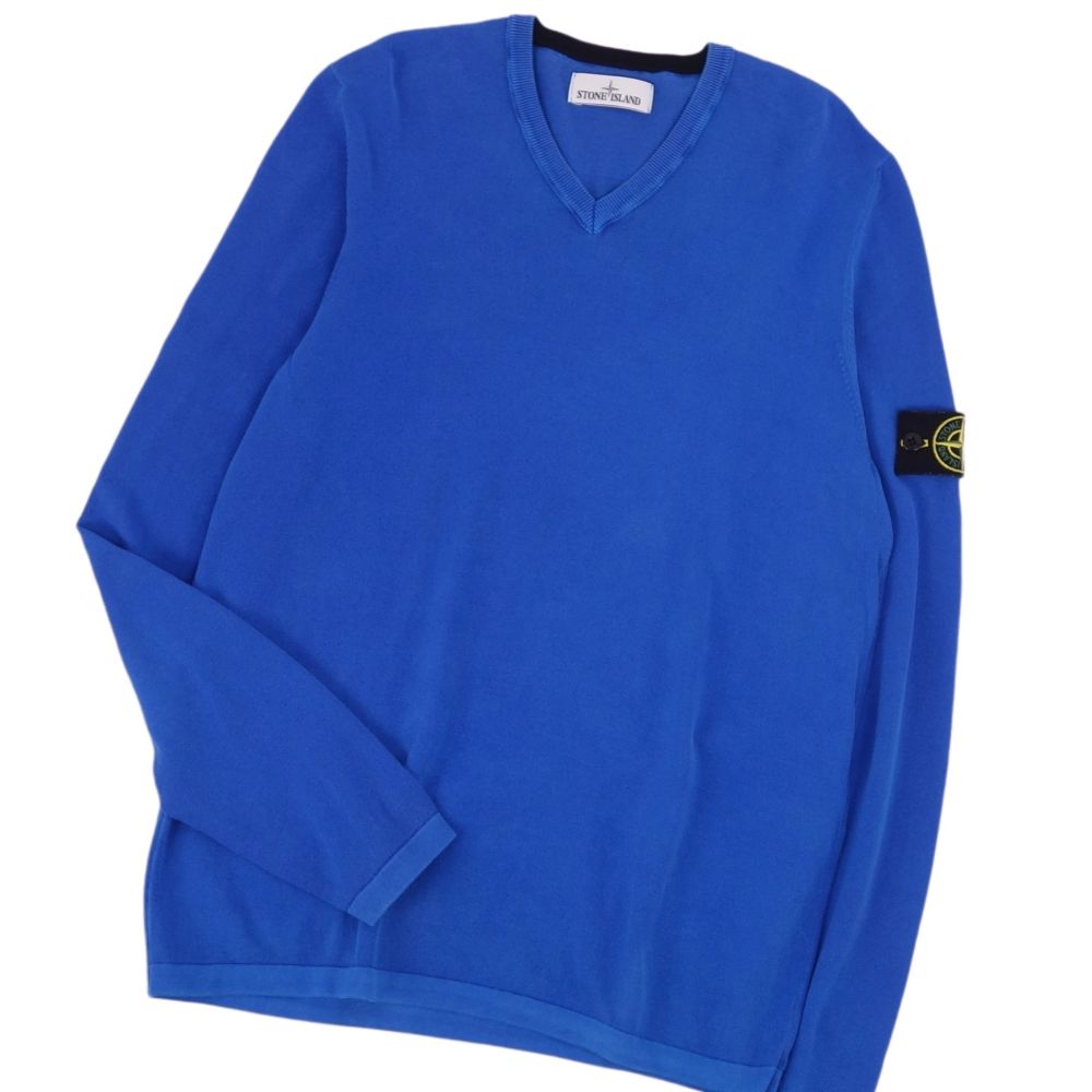 商品名 【美品】ストーンアイランド STONE ISLAND ニット セーター プルオーバー ロゴパッチ コットン トップス メンズ イタリア製 XL ブルー【中古】