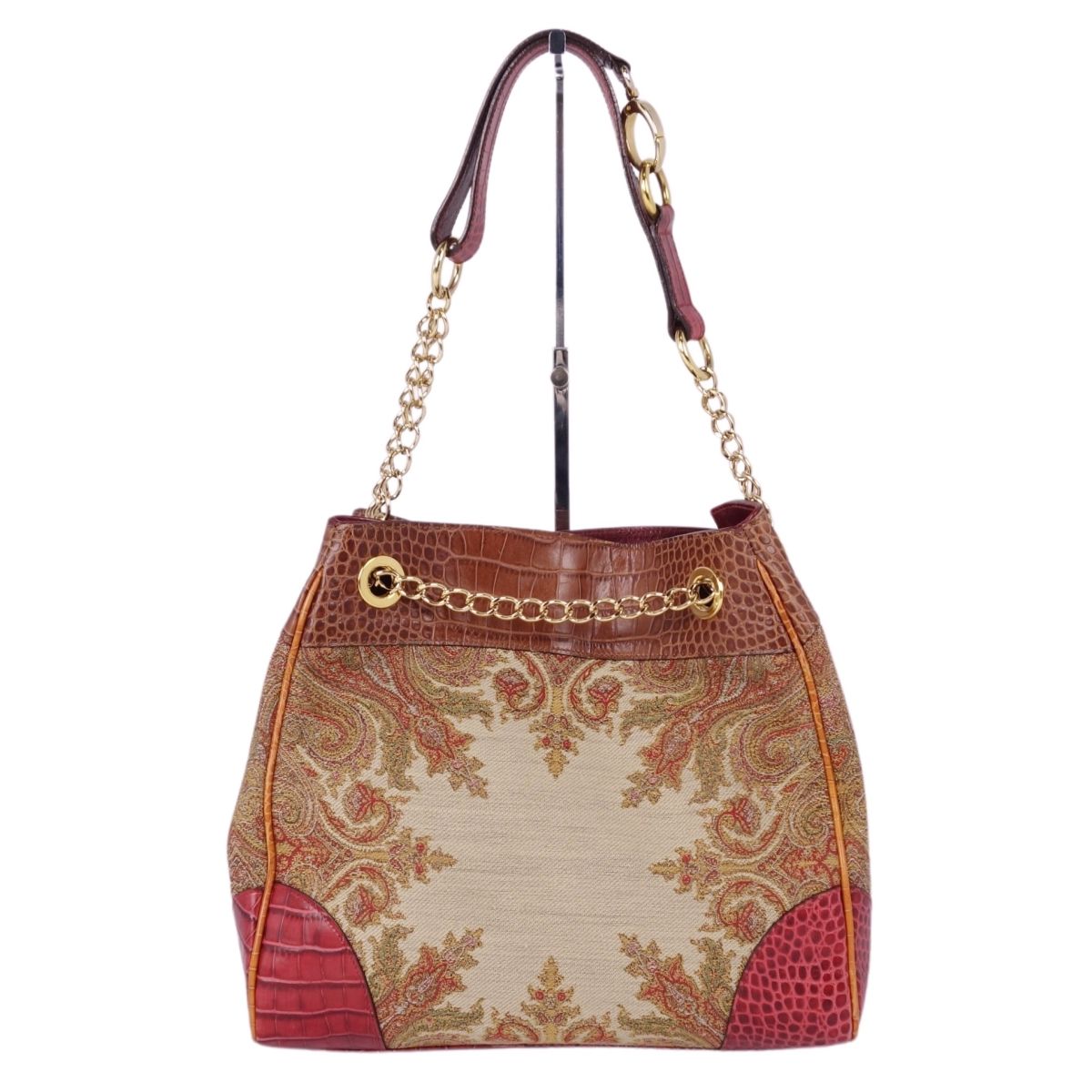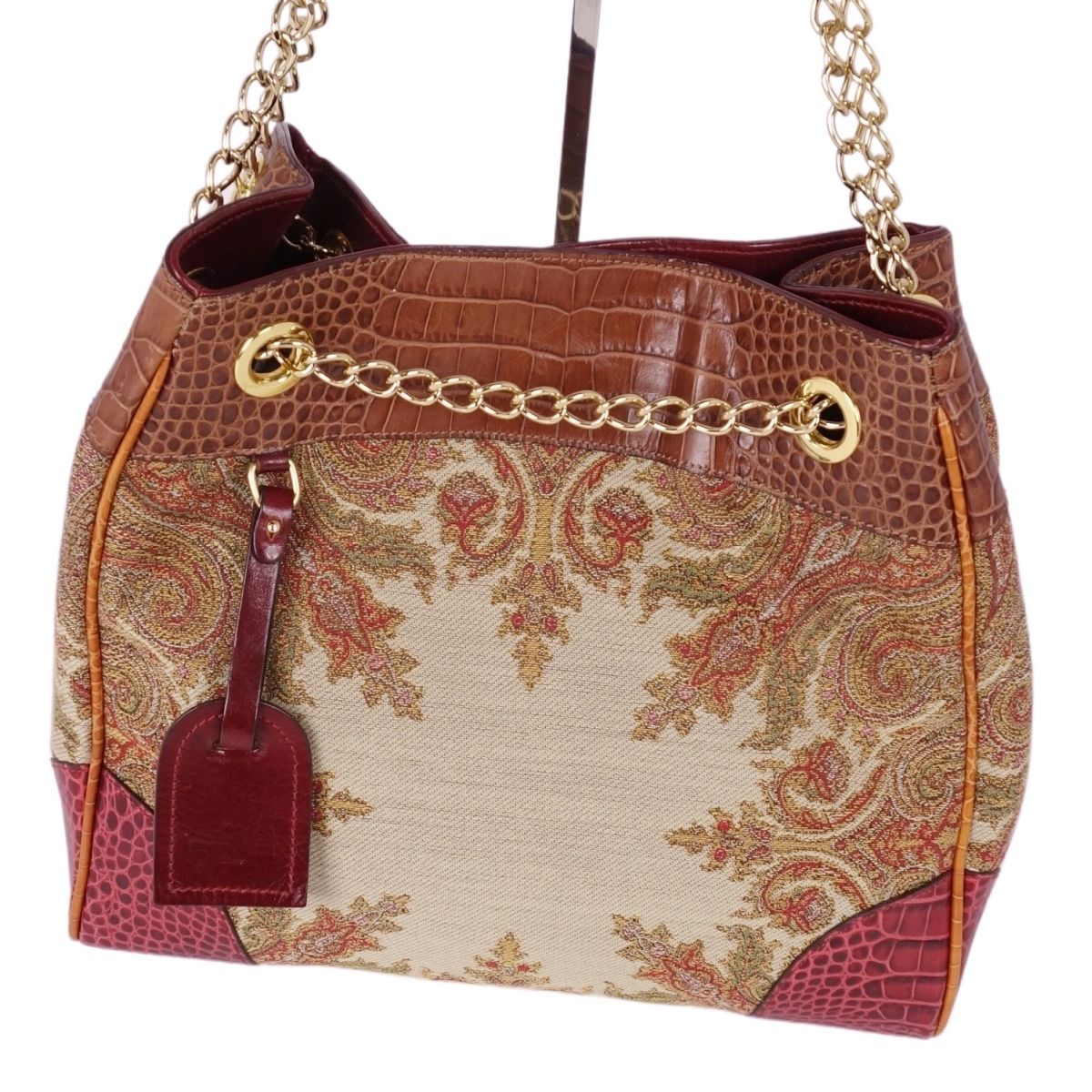 エトロ ETRO バッグ ハンドバッグ トートバッグ ペイズリー柄 キャンバス マットクロコ ワニ革 カバン レディース マルチカラー サイズ-