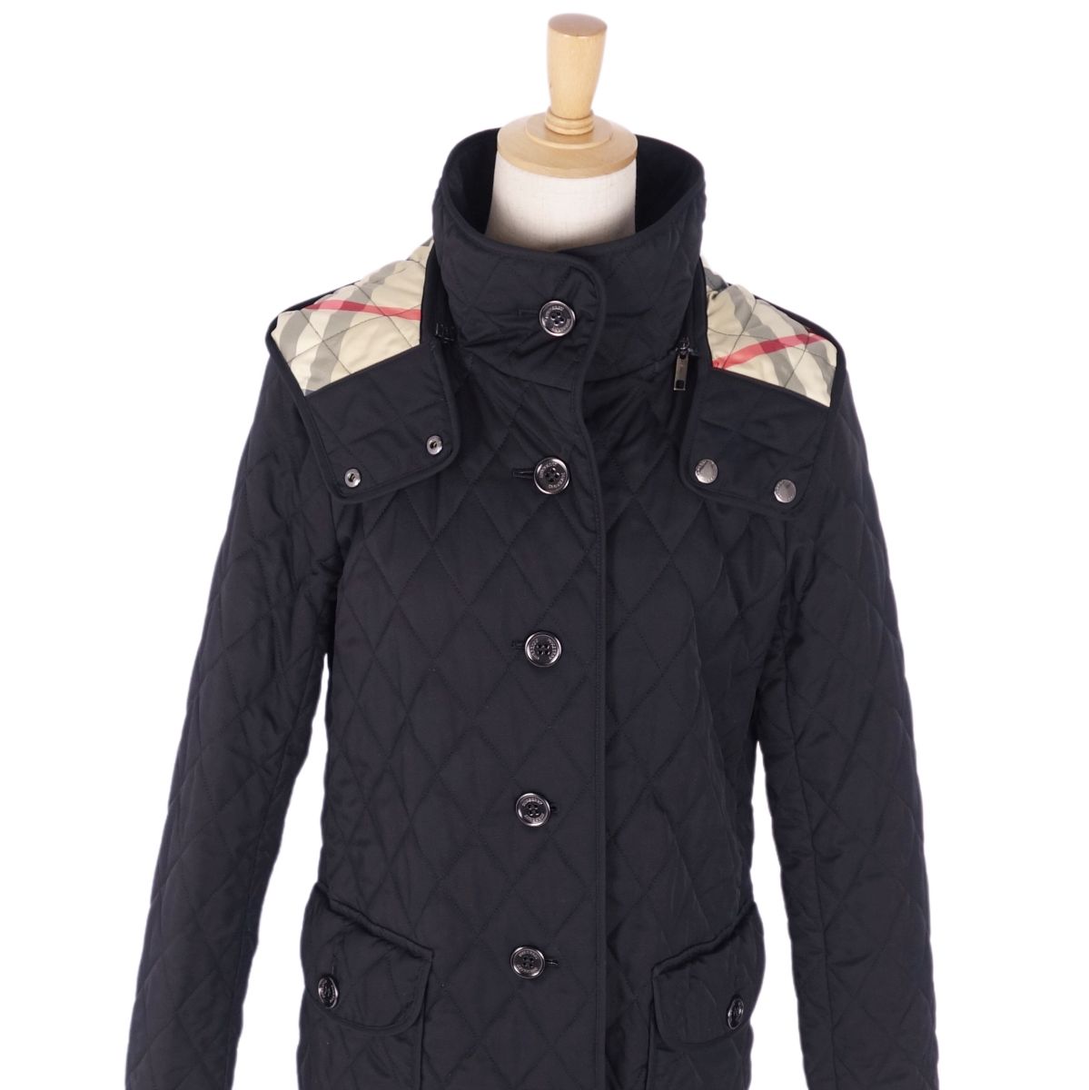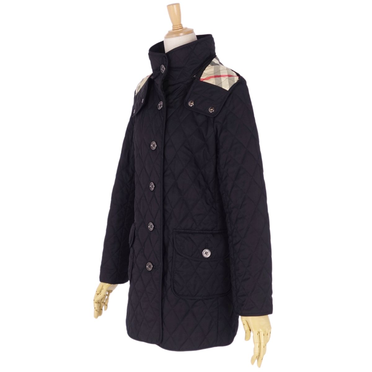 バーバリー ロンドン BURBERRY LONDON コート フード付き フーディ キルティング アウター レディース ブラック サイズ34(S相当)