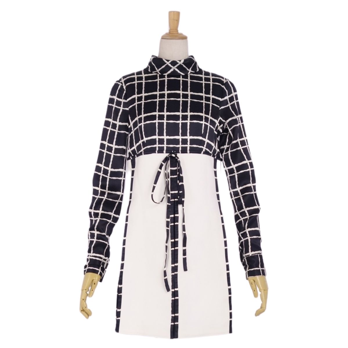 ディースクエアード DSQUARED2 ワンピース ロングスリーブ ショートドレス ドッキングワンピース レディース ネイビー/ホワイト サイズ38(S相当)