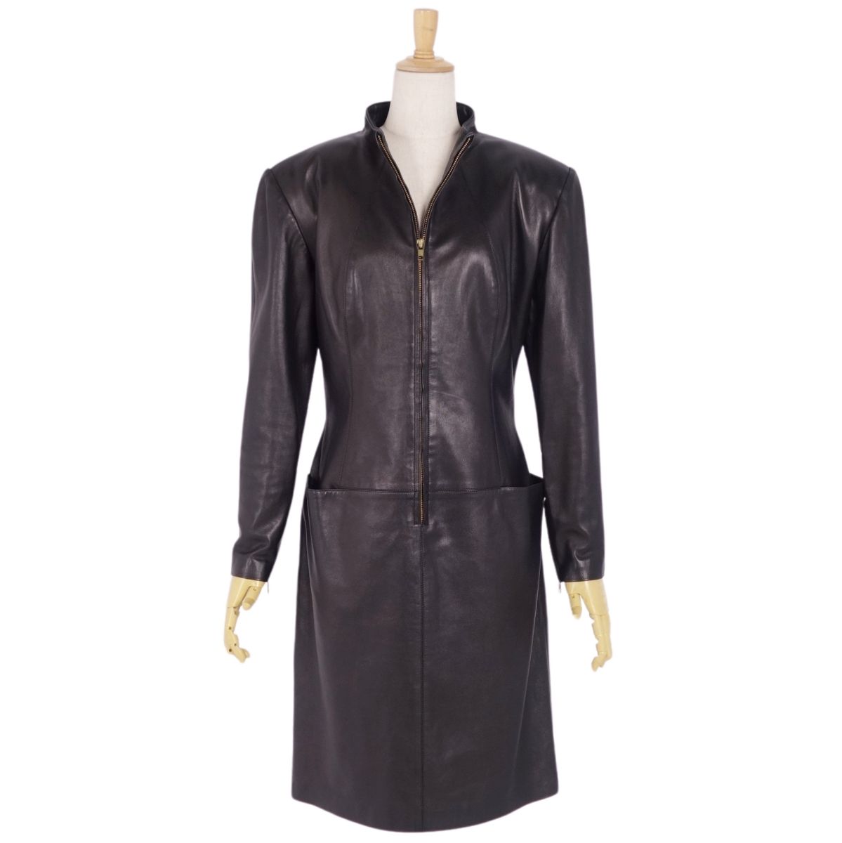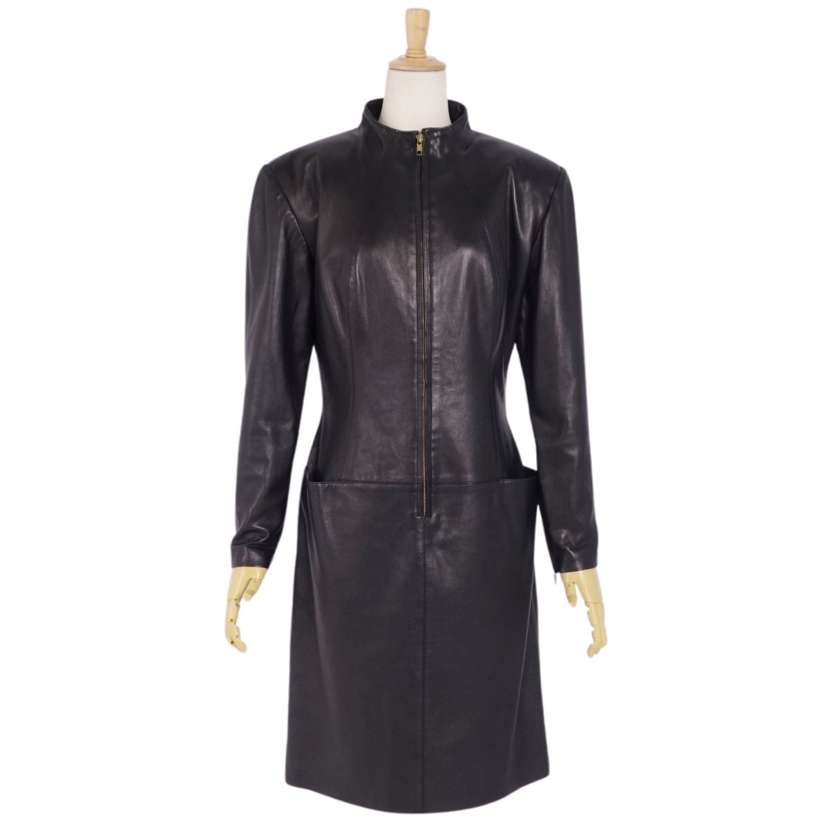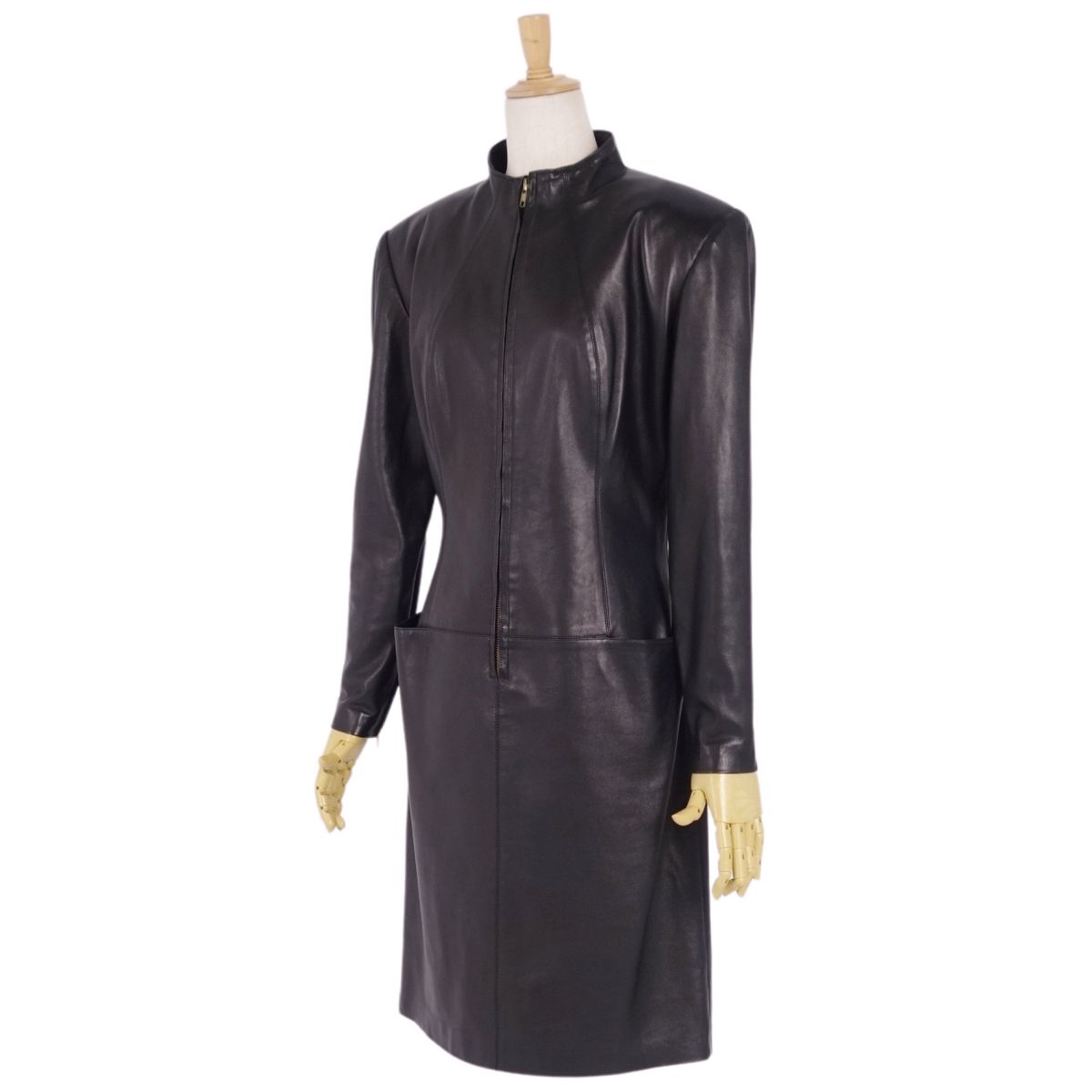 | 商品名 | 【美品】Vintage エルメス HERMES ワンピース ドレス ハーフジップ ラムレザー 無地 トップス レディース 40(M相当) ブラック【中古】 |