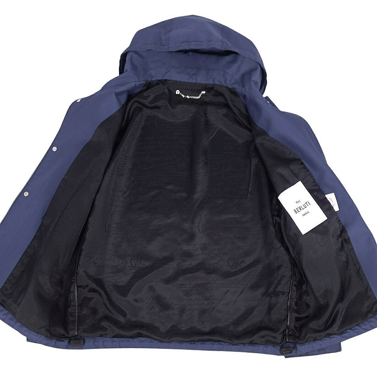 ベルルッティ Berluti ジャケット パーカー ジップアップ 裏カリグラフィ コットン レザー アウター メンズ ネイビー サイズR52(L相当)