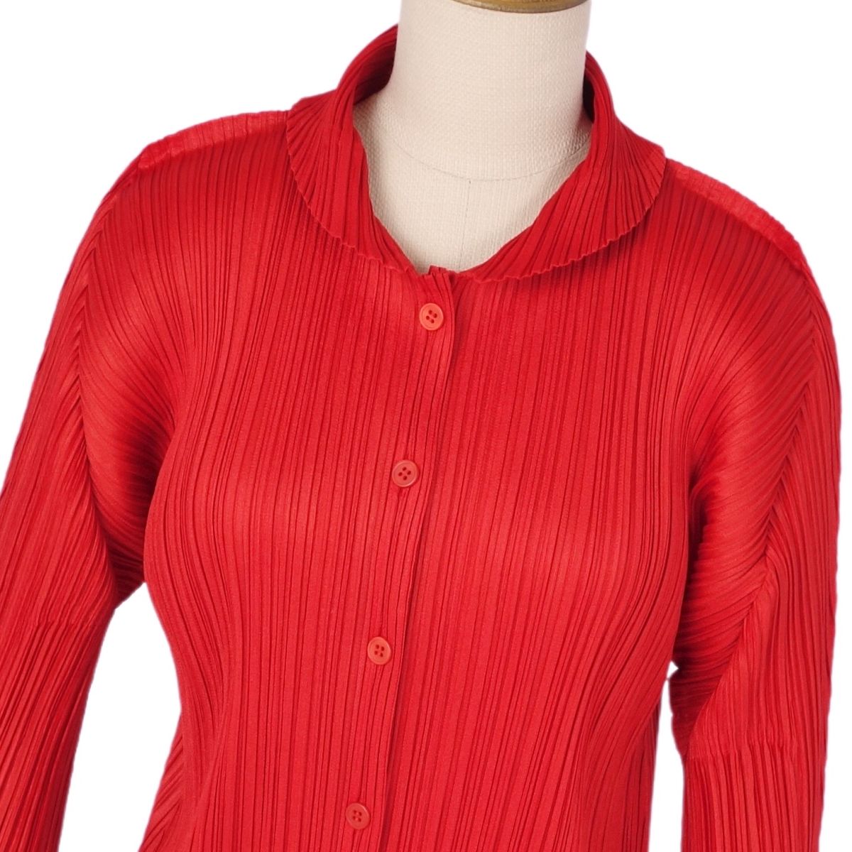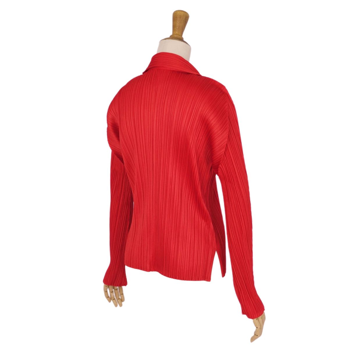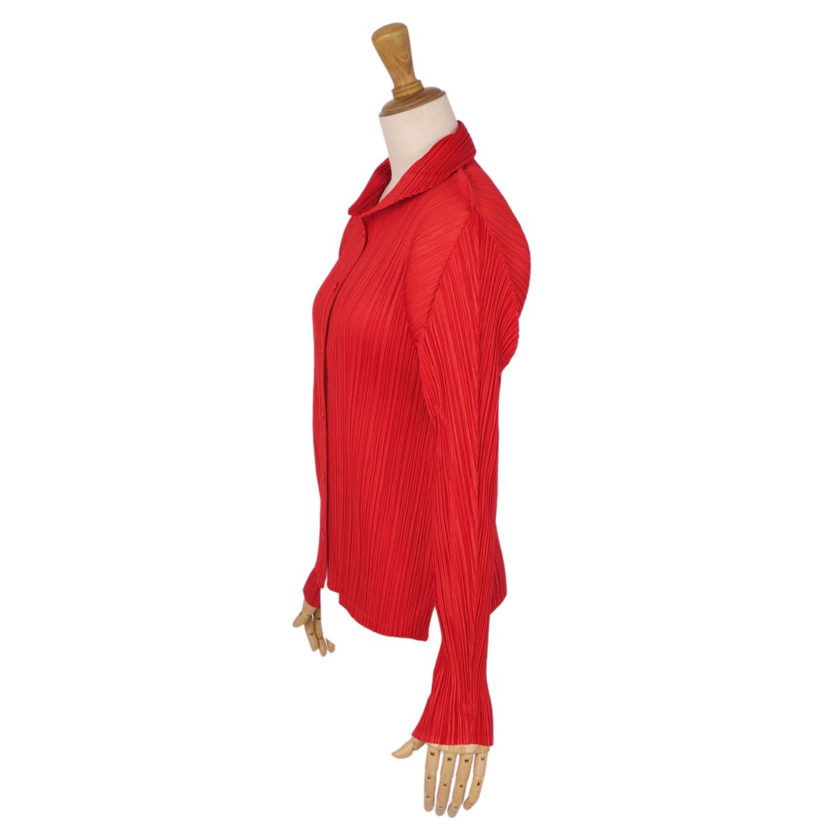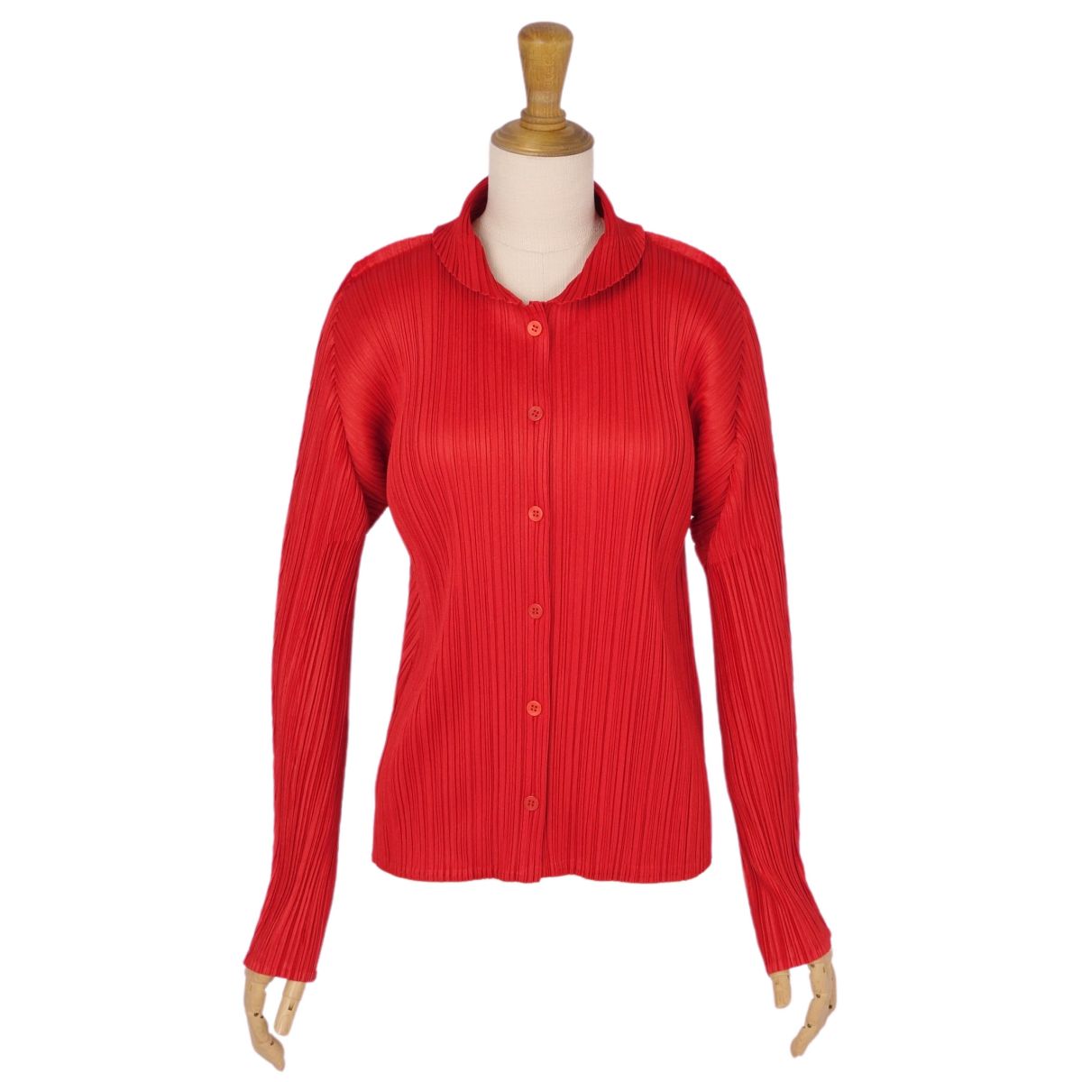 プリーツプリーズ イッセイミヤケ PLEATS PLEASE シャツ ブラウス ロングスリーブ 長袖 無地 プリーツ トップス レディース レッド サイズ3(L相当)