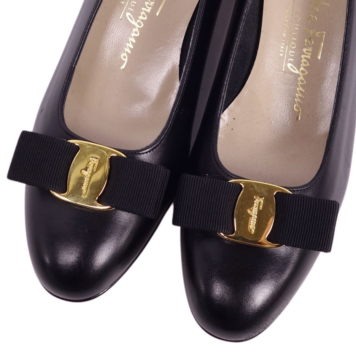 サルヴァトーレ フェラガモ Salvatore Ferragamo パンプス ヴァラ ヒール カーフレザー シューズ レディース ブラック サイズ7.5C(25cm相当)