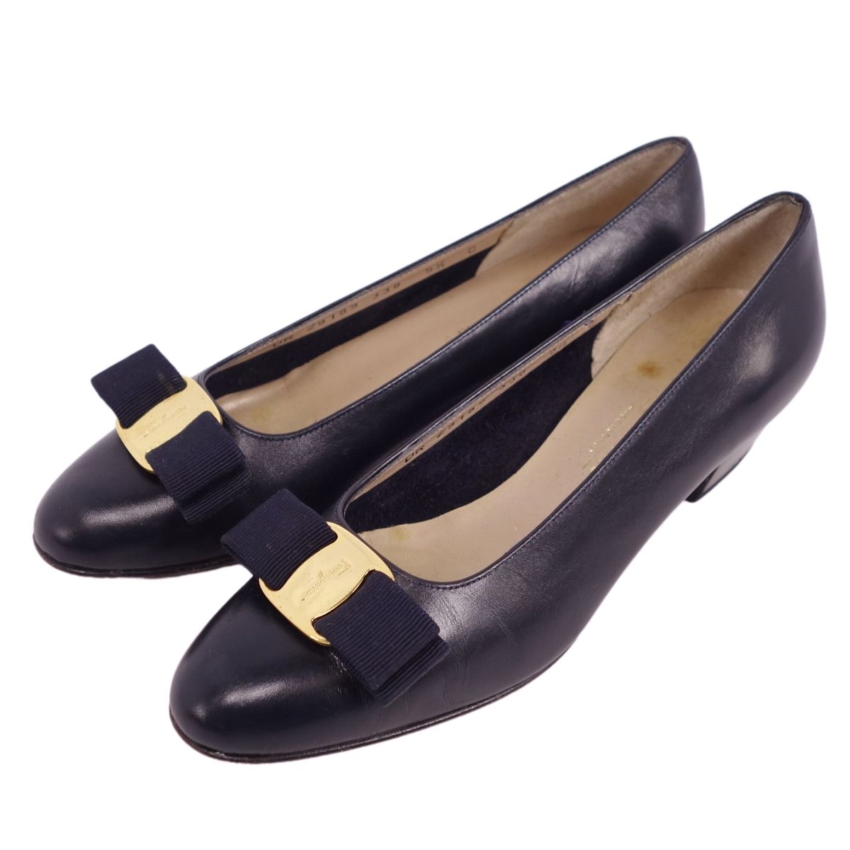 サルヴァトーレ フェラガモ Salvatore Ferragamo パンプス ヒール ヴァラ カーフレザー シューズ レディース ネイビー サイズ5.5C(23cm相当)