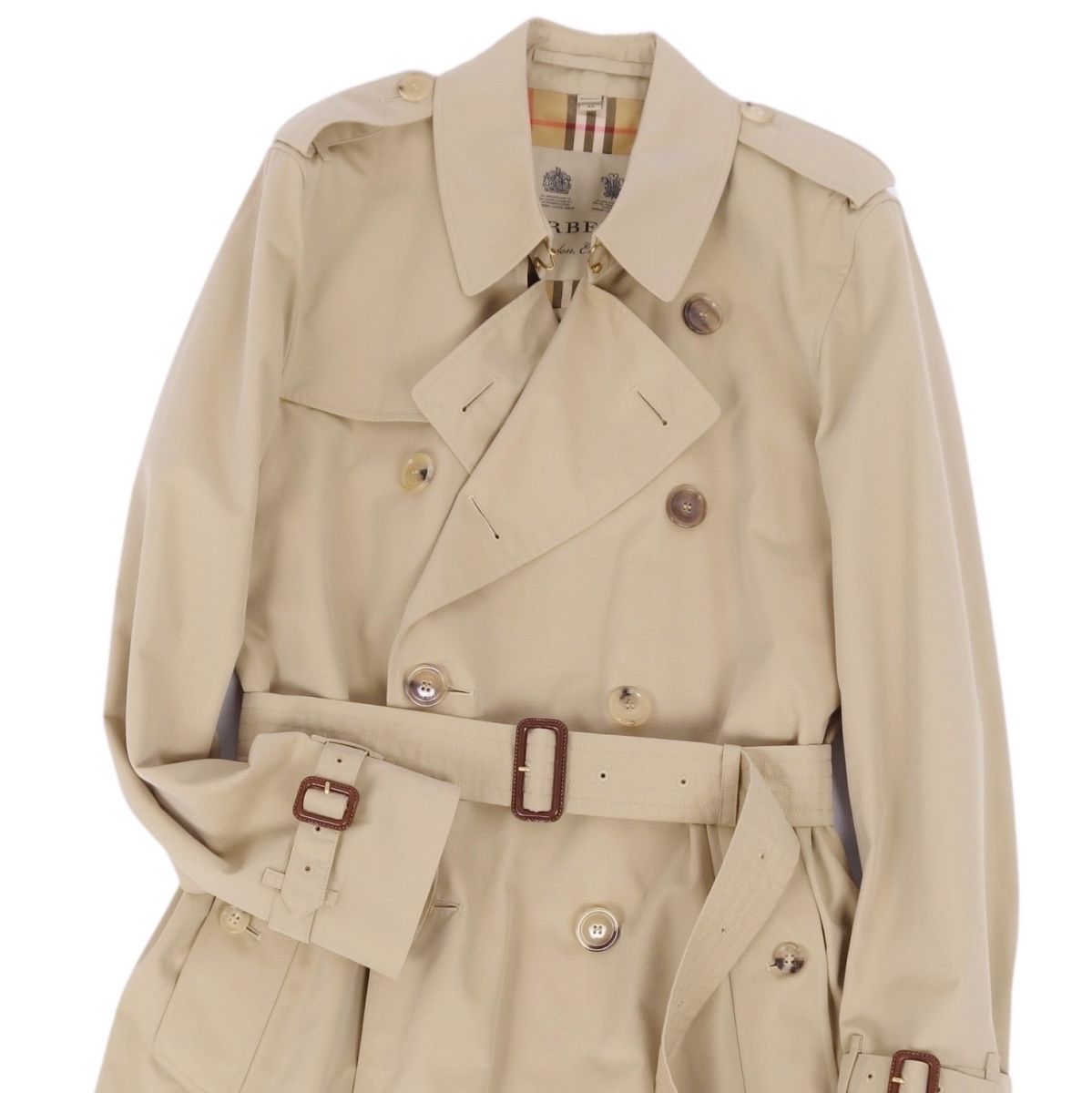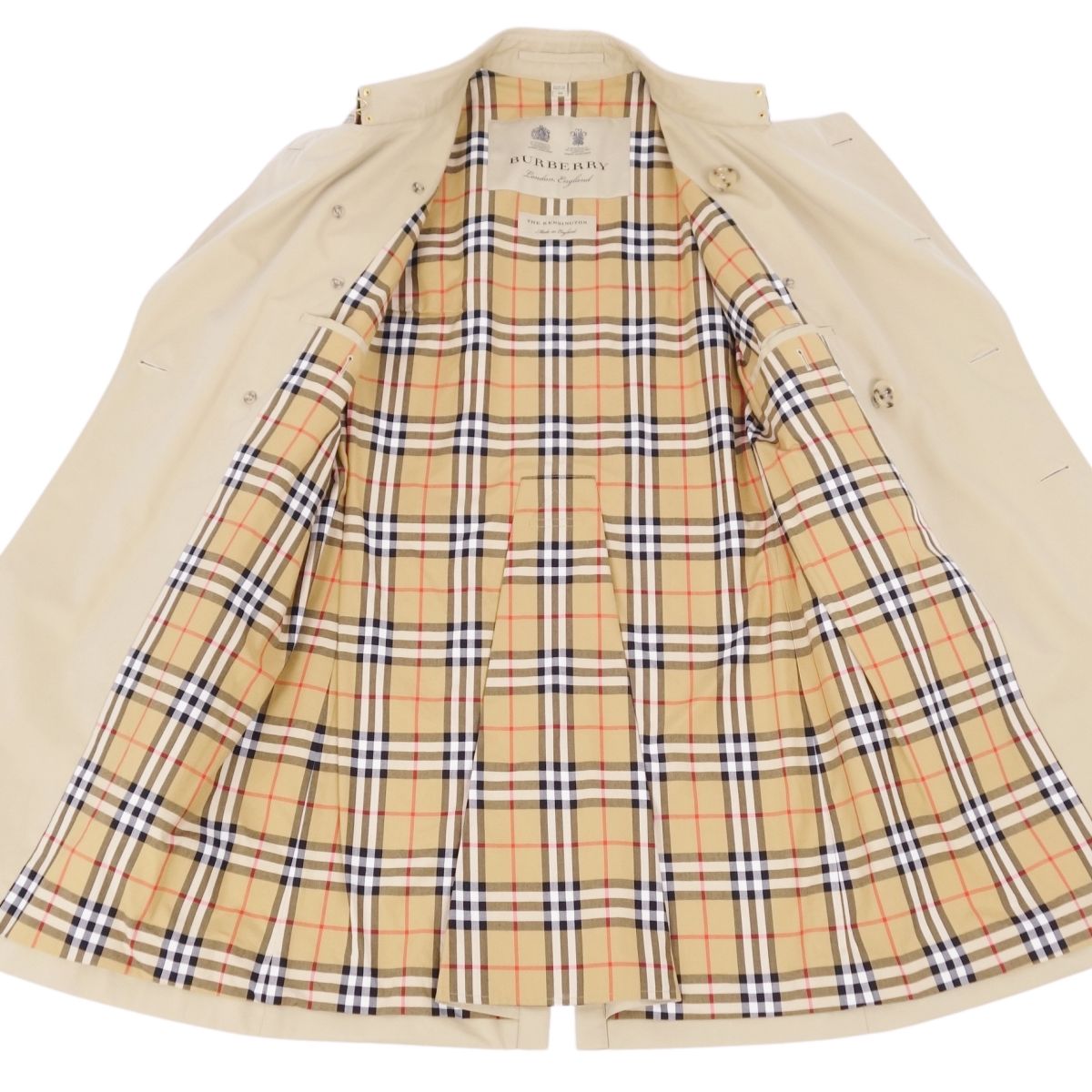 商品名 【美品】バーバリー BURBERRY コート トレンチコート THE KENSINGTON ケンジントン 裏チェック 英国製 アウター メンズ 46(S相当) ベージュ【中古】